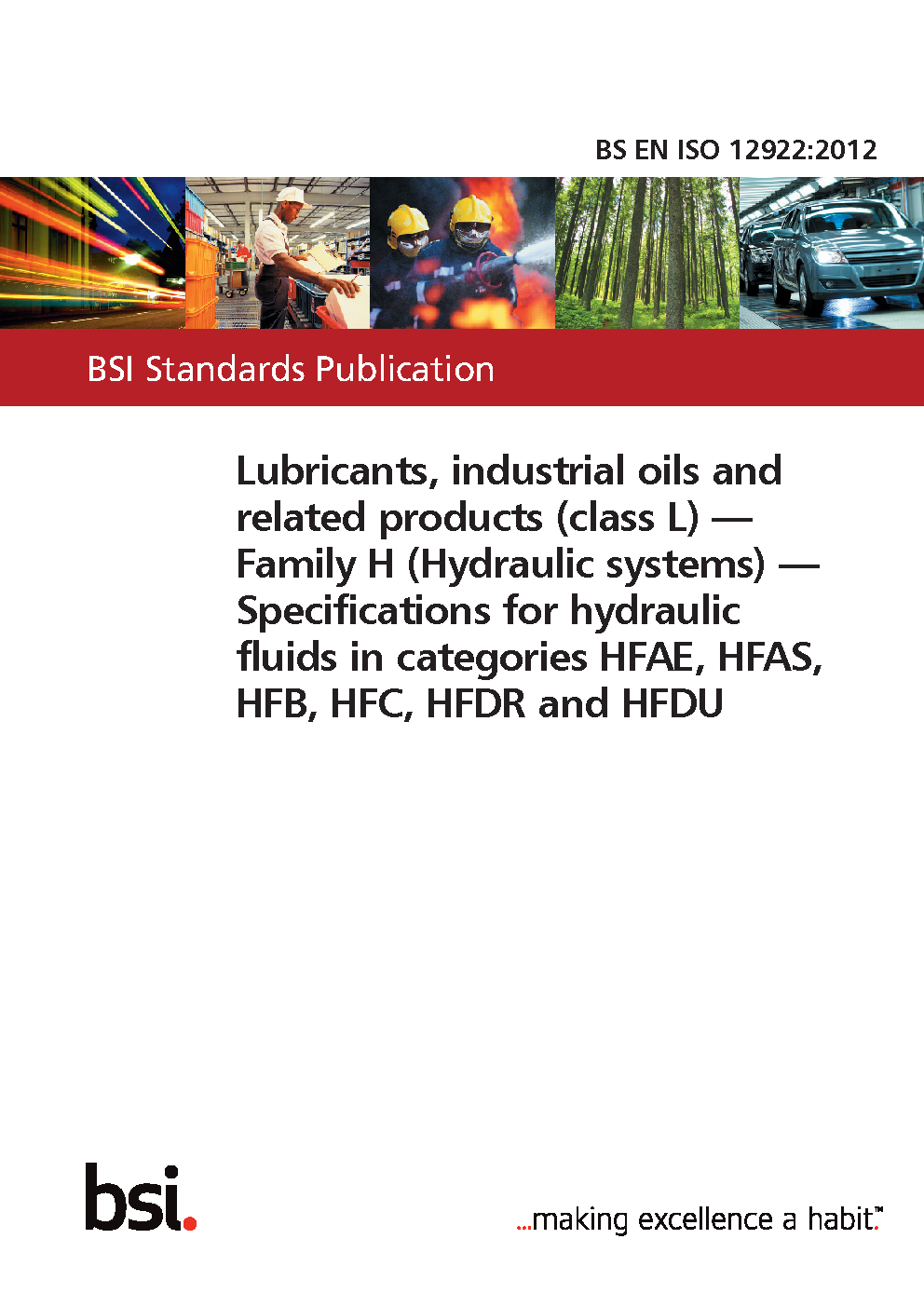 Lubricants, industrial oils and related products (class L). Family H (hydraulic systems). Specifications for categories HFAE, HFAS, HFB, HFC, HFDR and HFDU