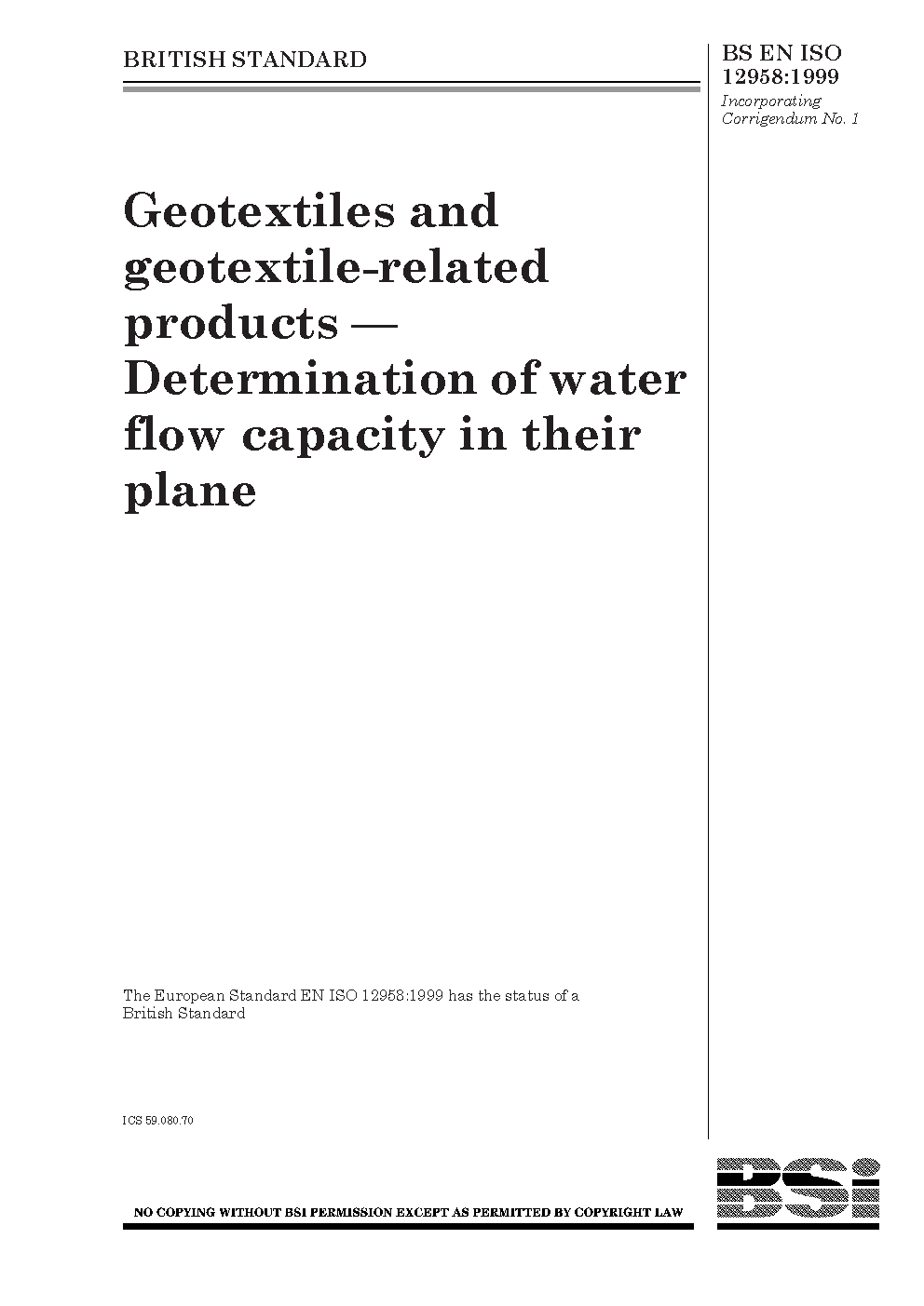 Geotextiles and geotextile-related products. Determination of water flow capacity in their plane