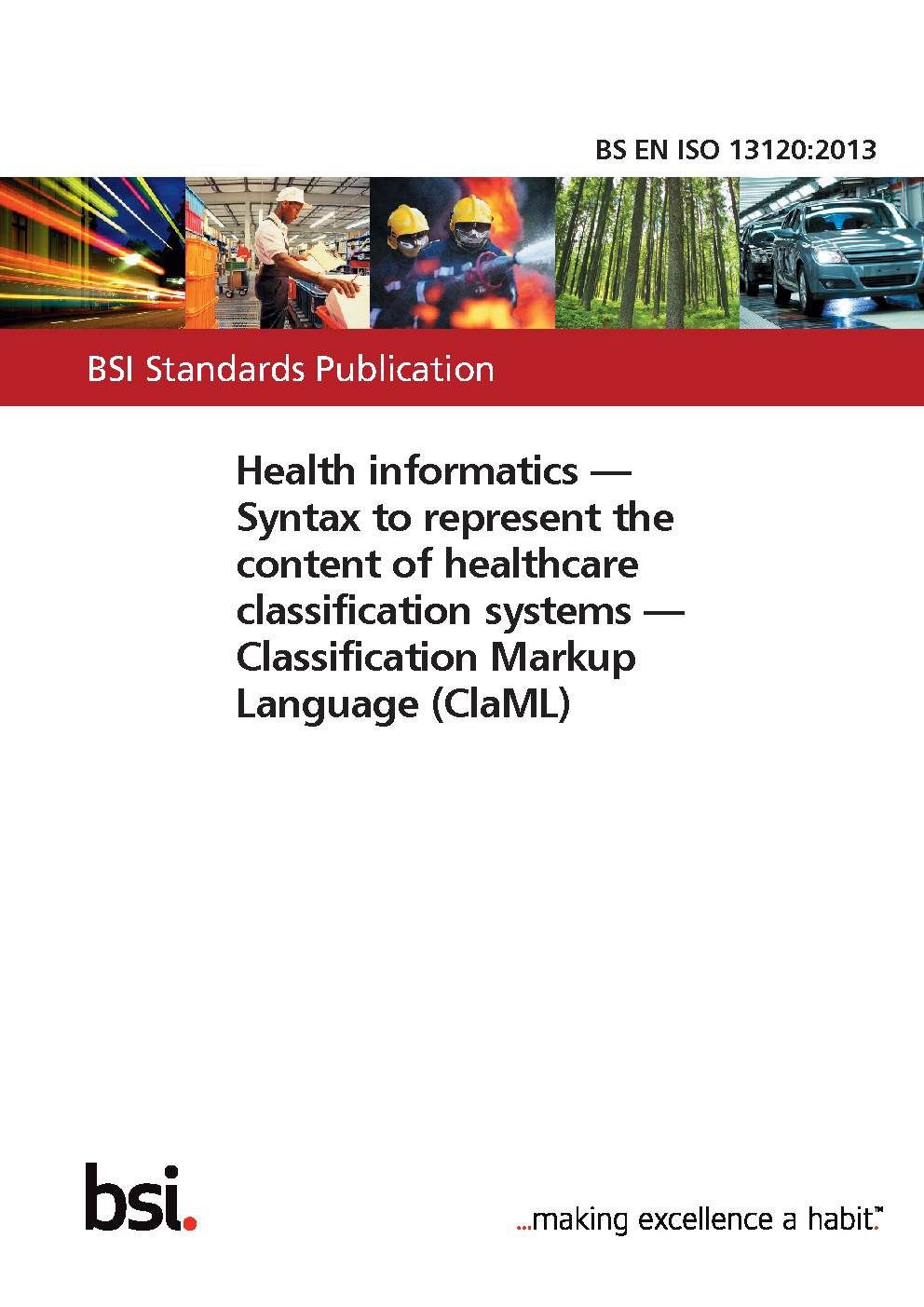 Health informatics. Syntax to represent the content of healthcare classification systems. Classification Markup Language (ClaML)