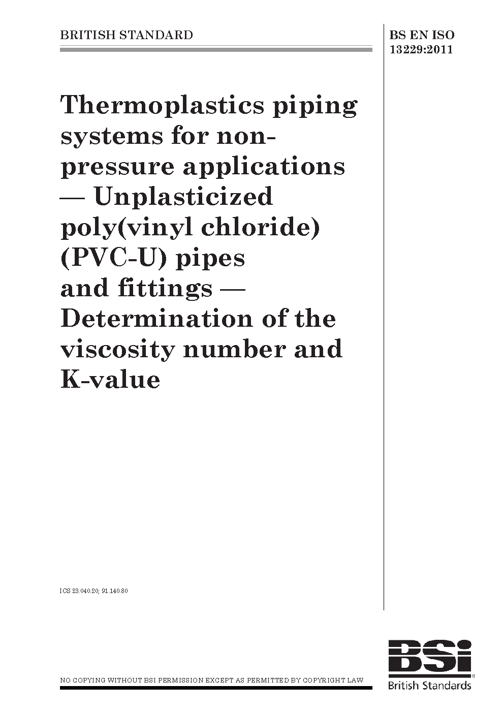 Thermoplastics piping systems for non-pressure applications. Unplasticized poly(vinyl chloride) (PVC-U) pipes and fittings. Determination of the viscosity number and K-value