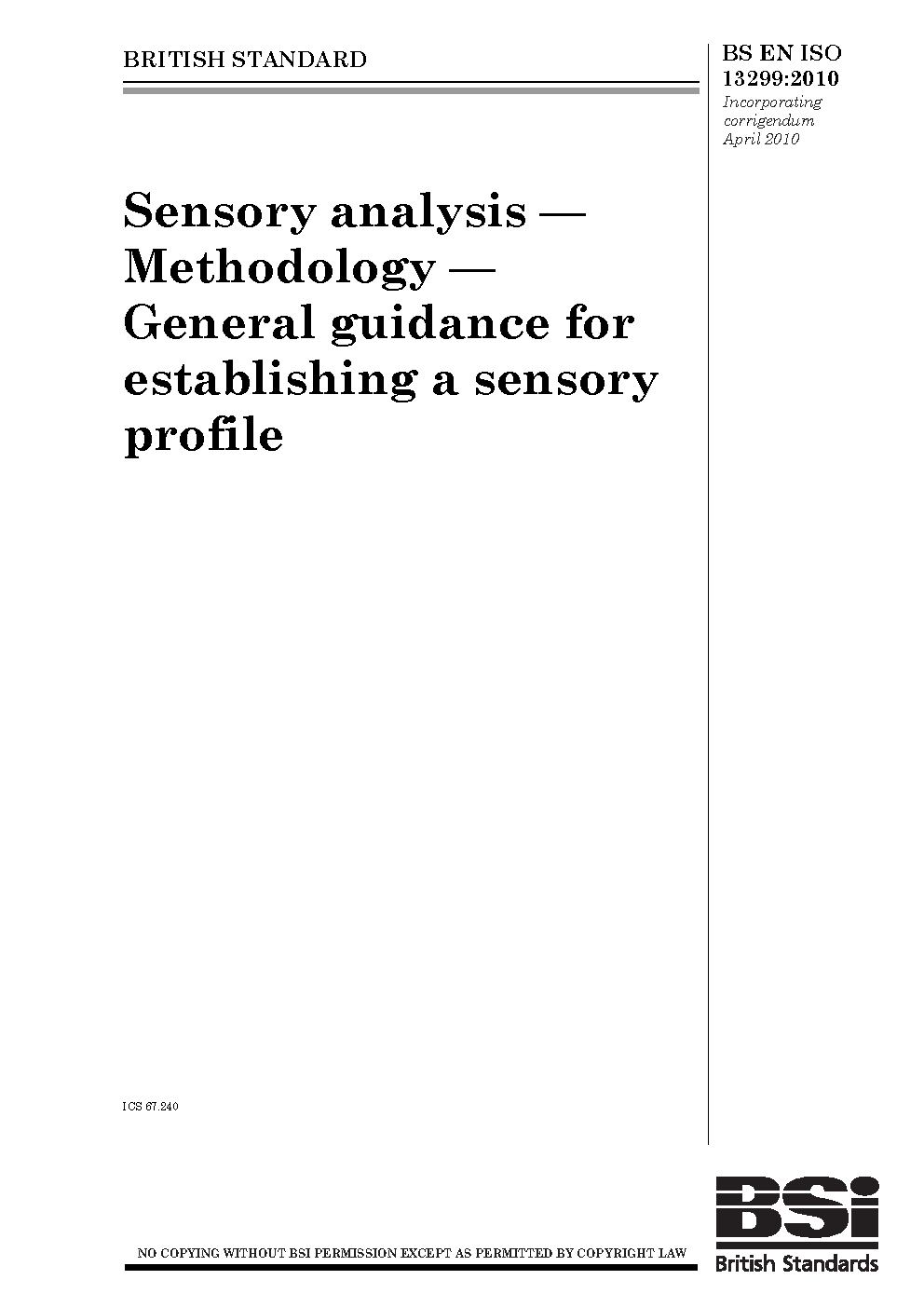 Sensory analysis. Methodology. General guidance for establishing a sensory profile