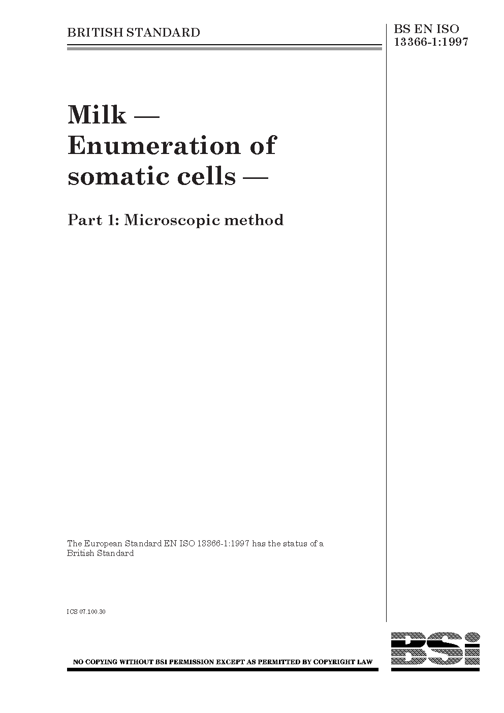 Milk. Enumeration of somatic cells Microscopic method (Reference method)