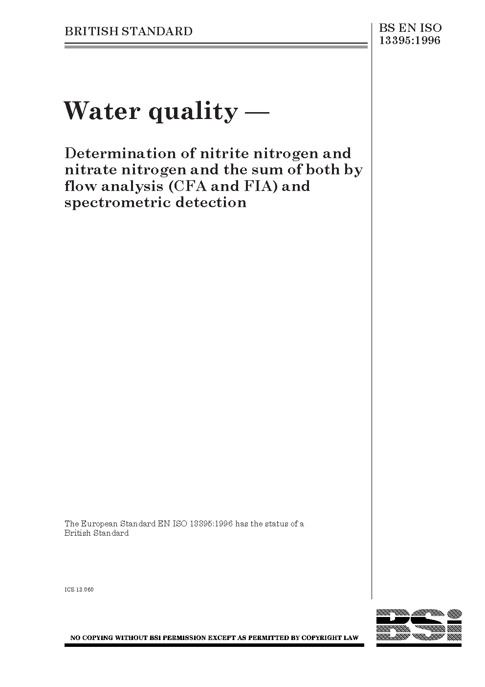 Water quality. Determination of nitrite nitrogen and nitrate nitrogen and the sum of both by flow analysis (CFA and FIA) and spectrometric detection
