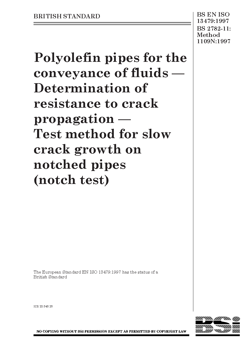 Polyolefin pipes for the conveyance of fluids — Determination of resistance to crack propagation — Test method for slow crack growth on notched pipes