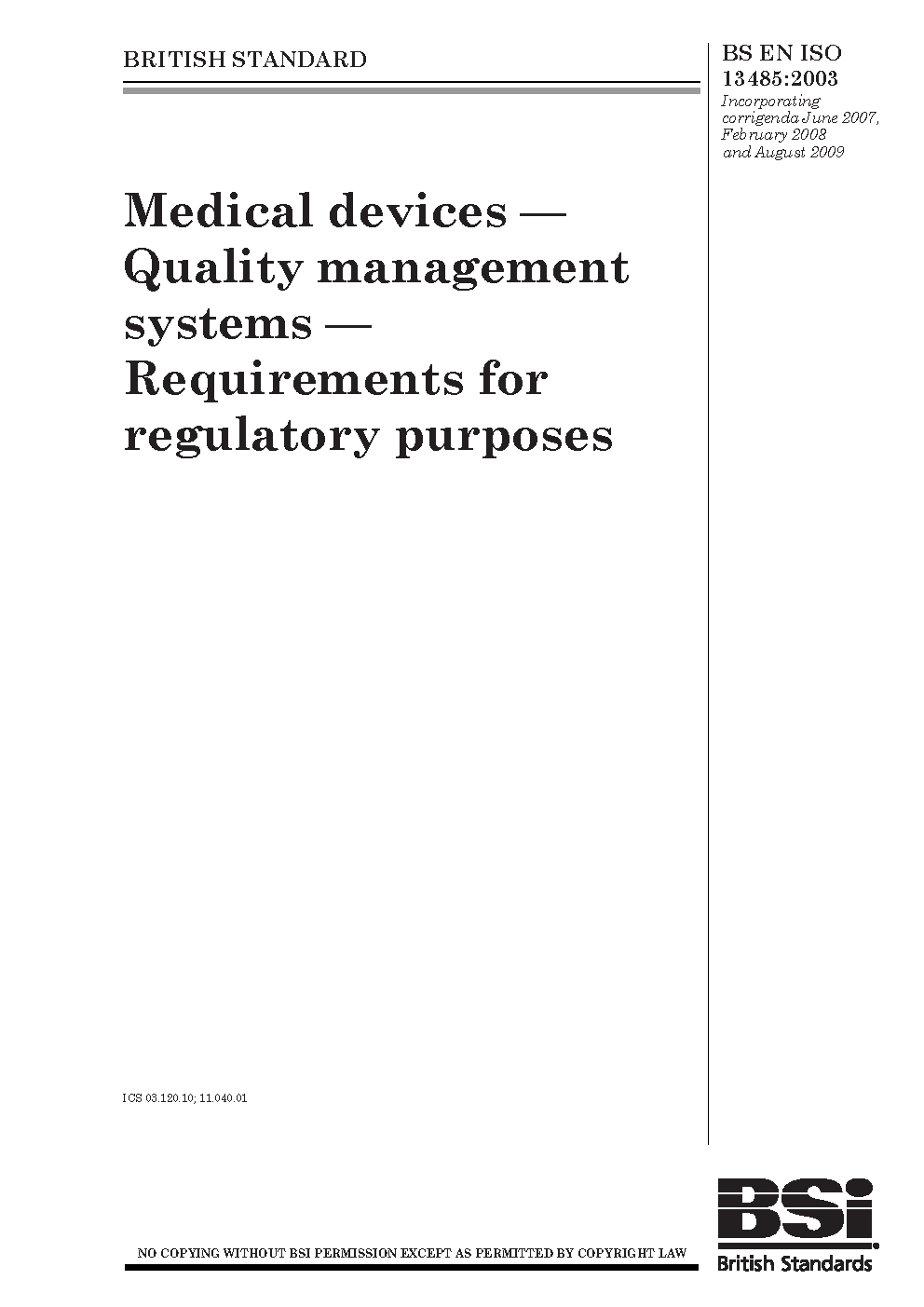 Medical devices. Quality management systems. Requirements for regulatory purposes