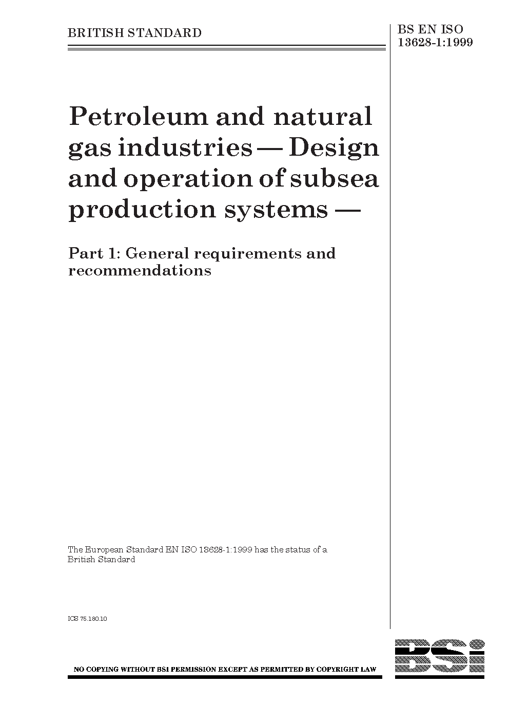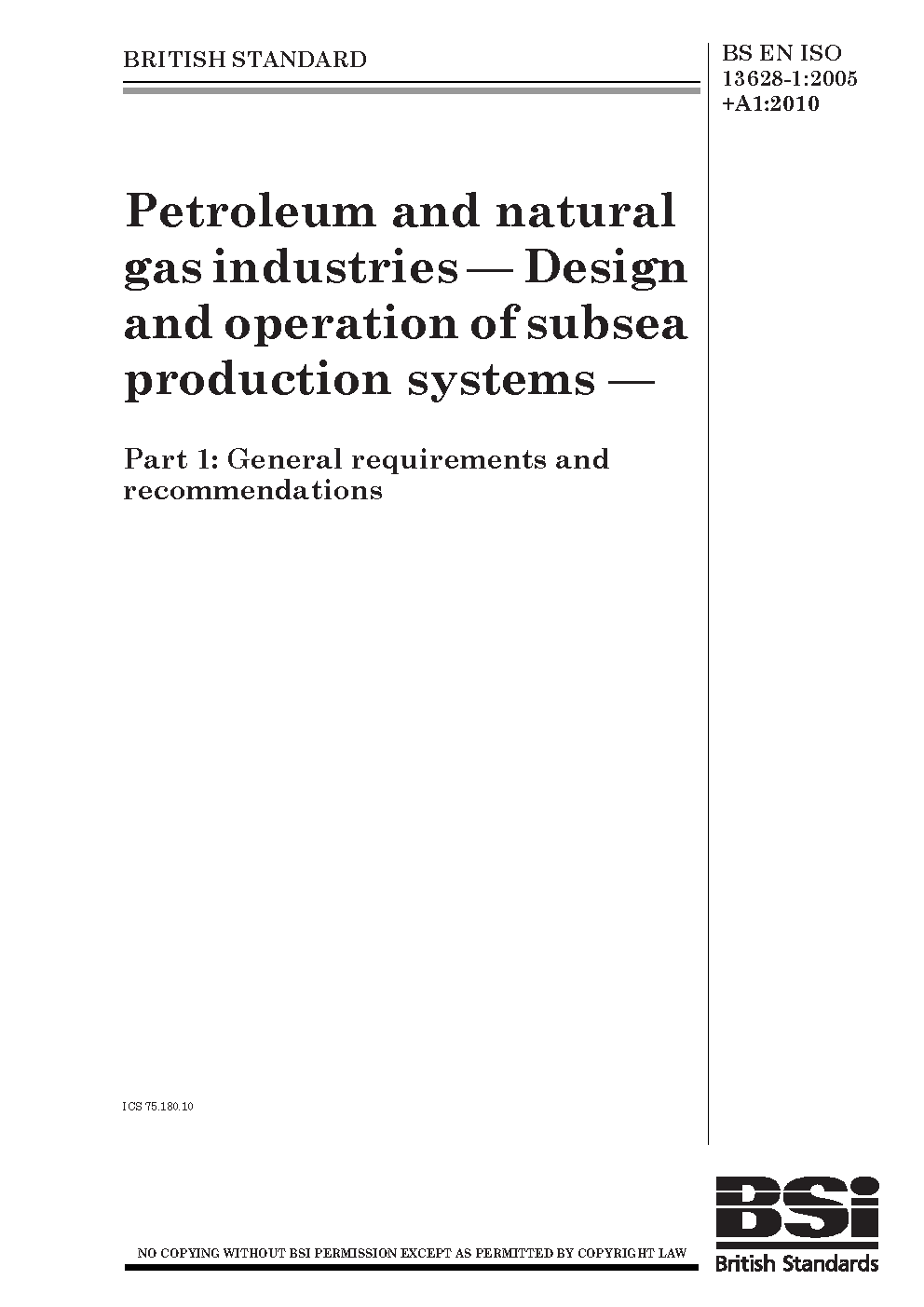 BS EN ISO 13628-1:2005+A1:2010