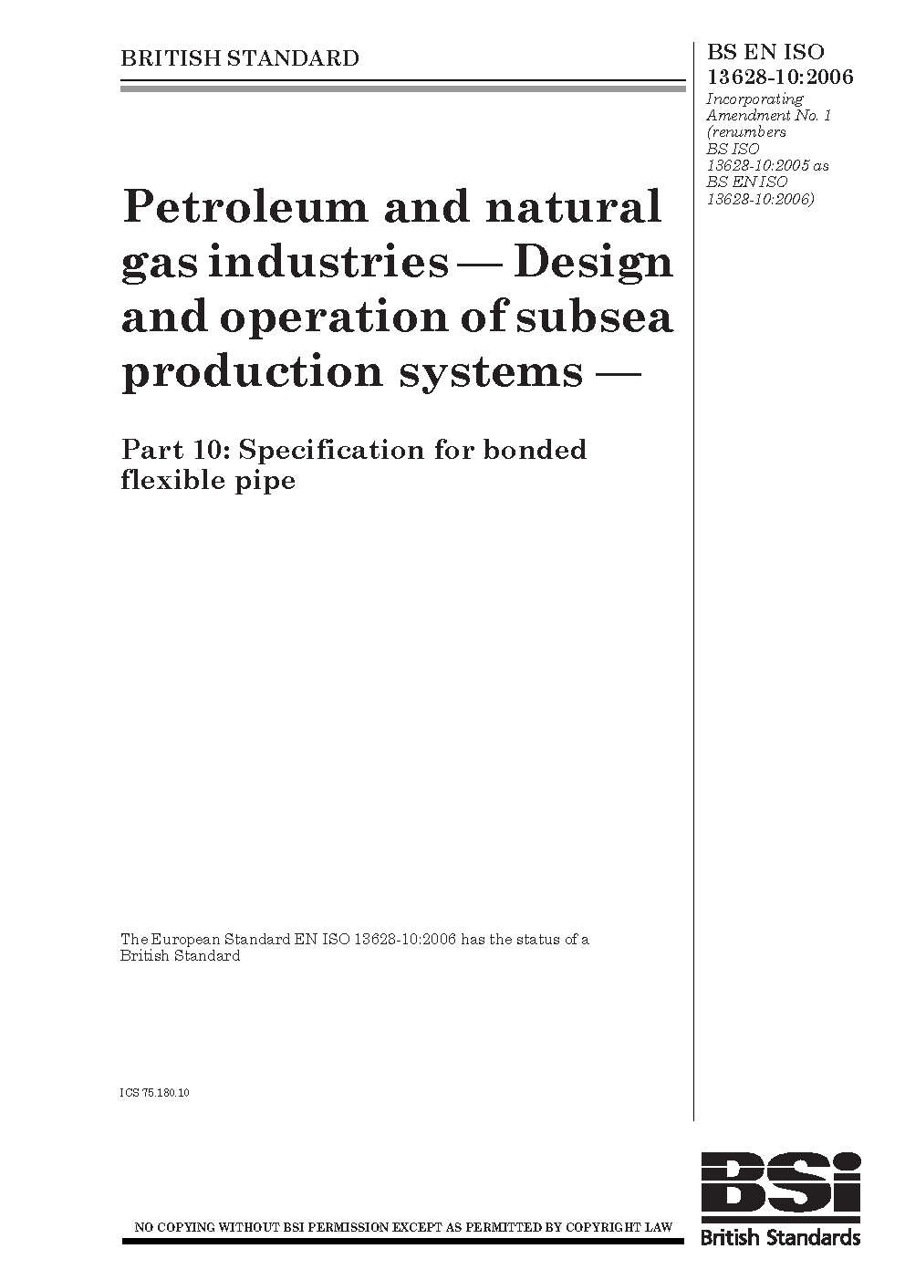 BS EN ISO 13628-10:2006