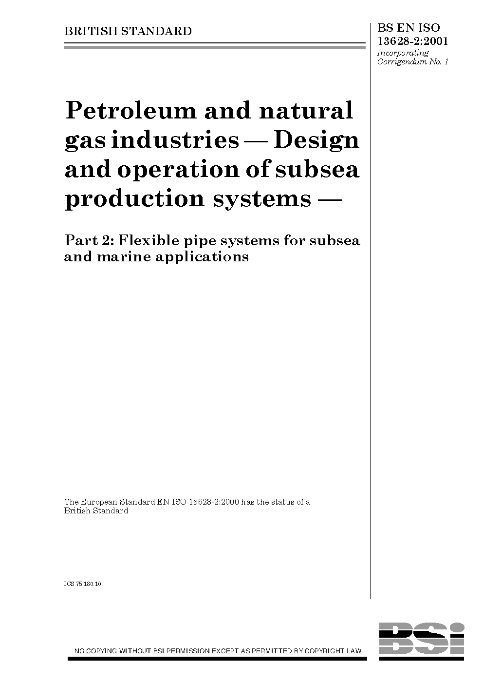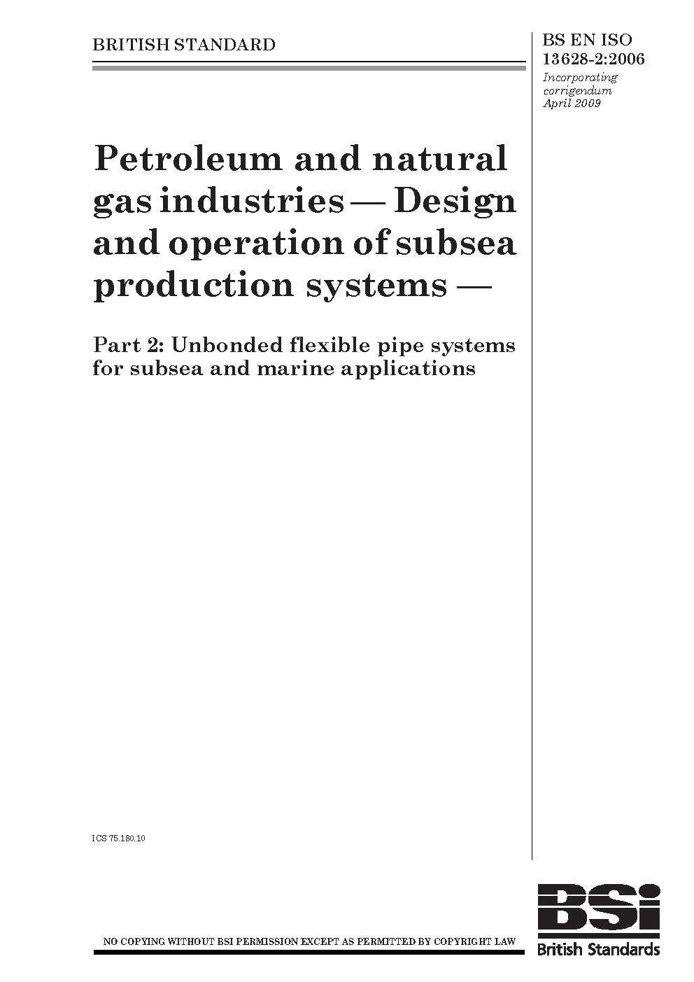 Petroleum and natural gas industries. Design operation of subsea production systems Unbonded flexible pipe for marine applications