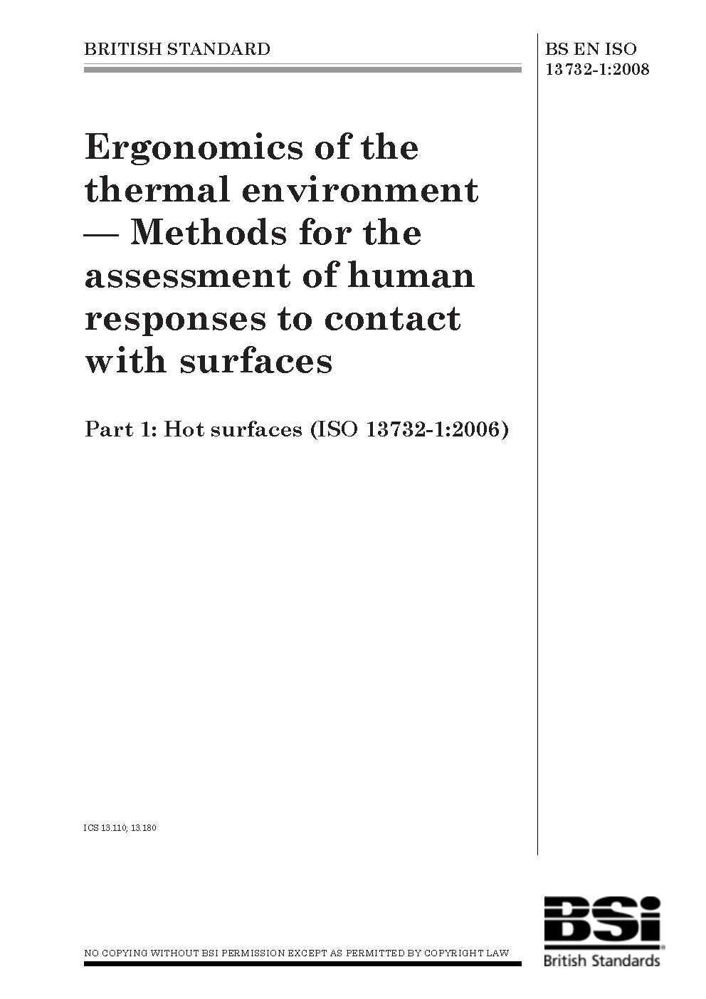 Ergonomics of the thermal environment. Methods for assessment human responses to contact with surfaces Hot
