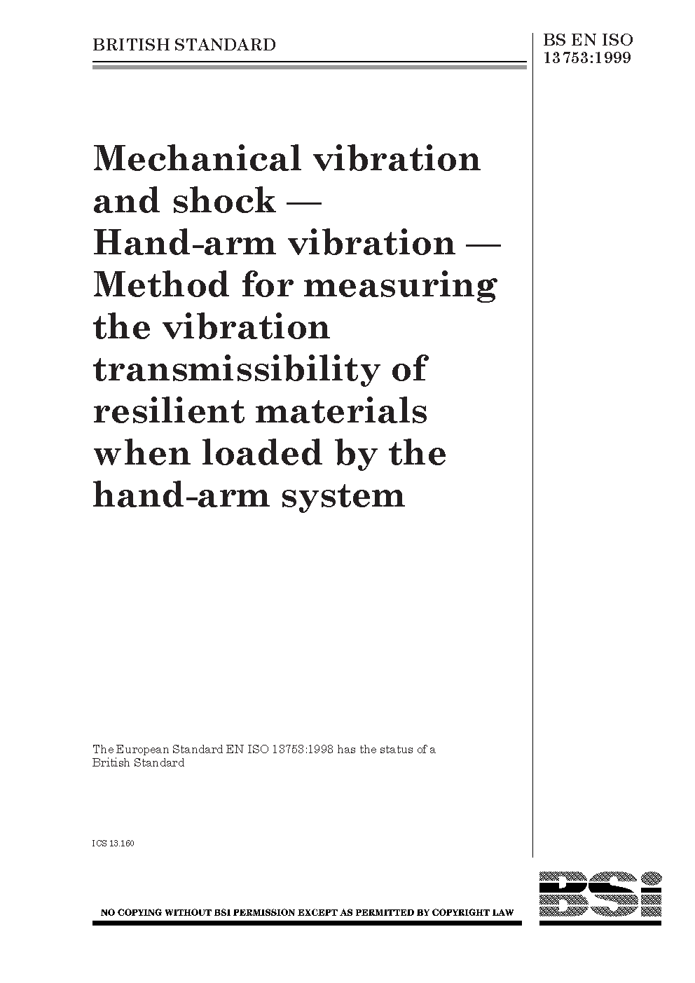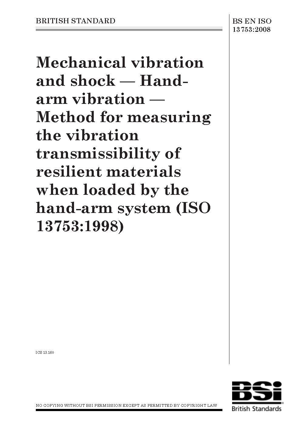 Mechanical vibration and shock. Hand-arm vibration. Method for measuring the vibration transmissibility of resilient materials when loaded by the hand-arm system