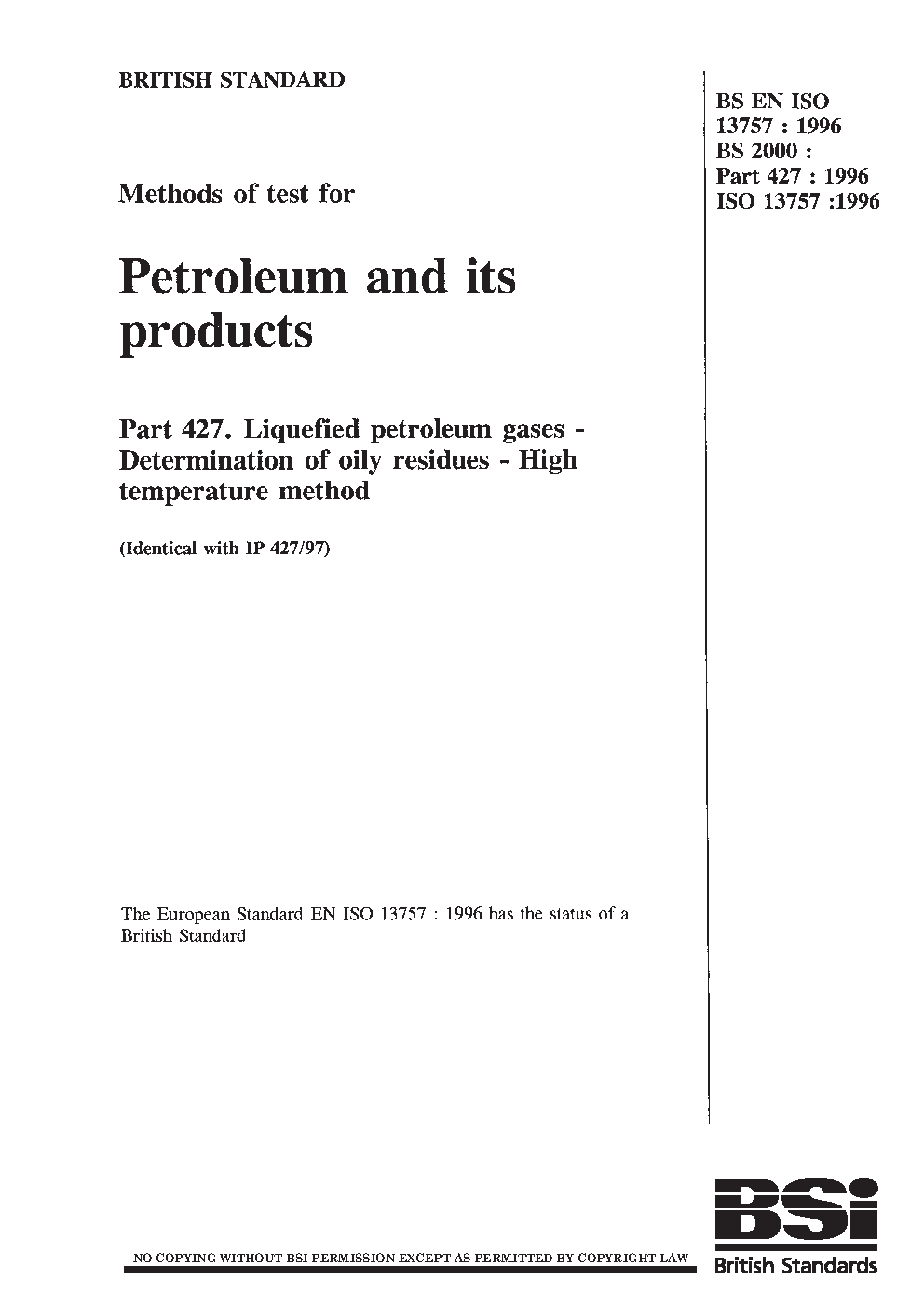 Methods of test for petroleum and its products. Liquefied petroleum gases. Determination of oily residues. High temperature method