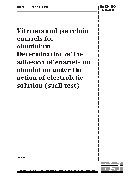 Vitreous and porcelain enamels for aluminium. Determination of the adhesion of enamels on aluminium under the action of electrolytic solution (spall test)