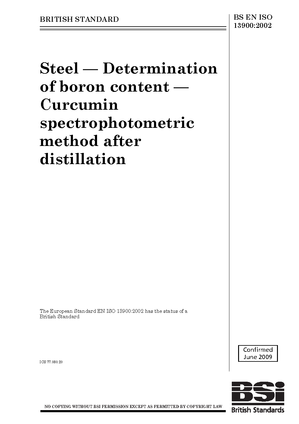 Curcumin;Chemical analysis and testing;Distillation methods of analysis;Steels;Spectrophotometry;Boron;Determination of content