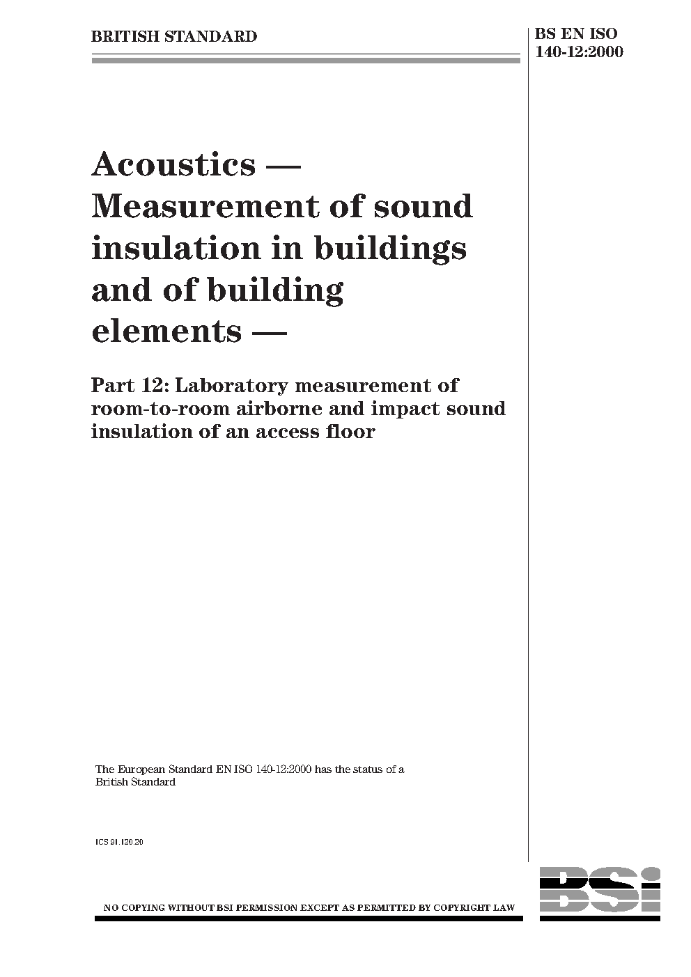 Acoustics. Measurement of sound insulation in buildings and building elements Laboratory measurement room-to-room airborne impact an access floor