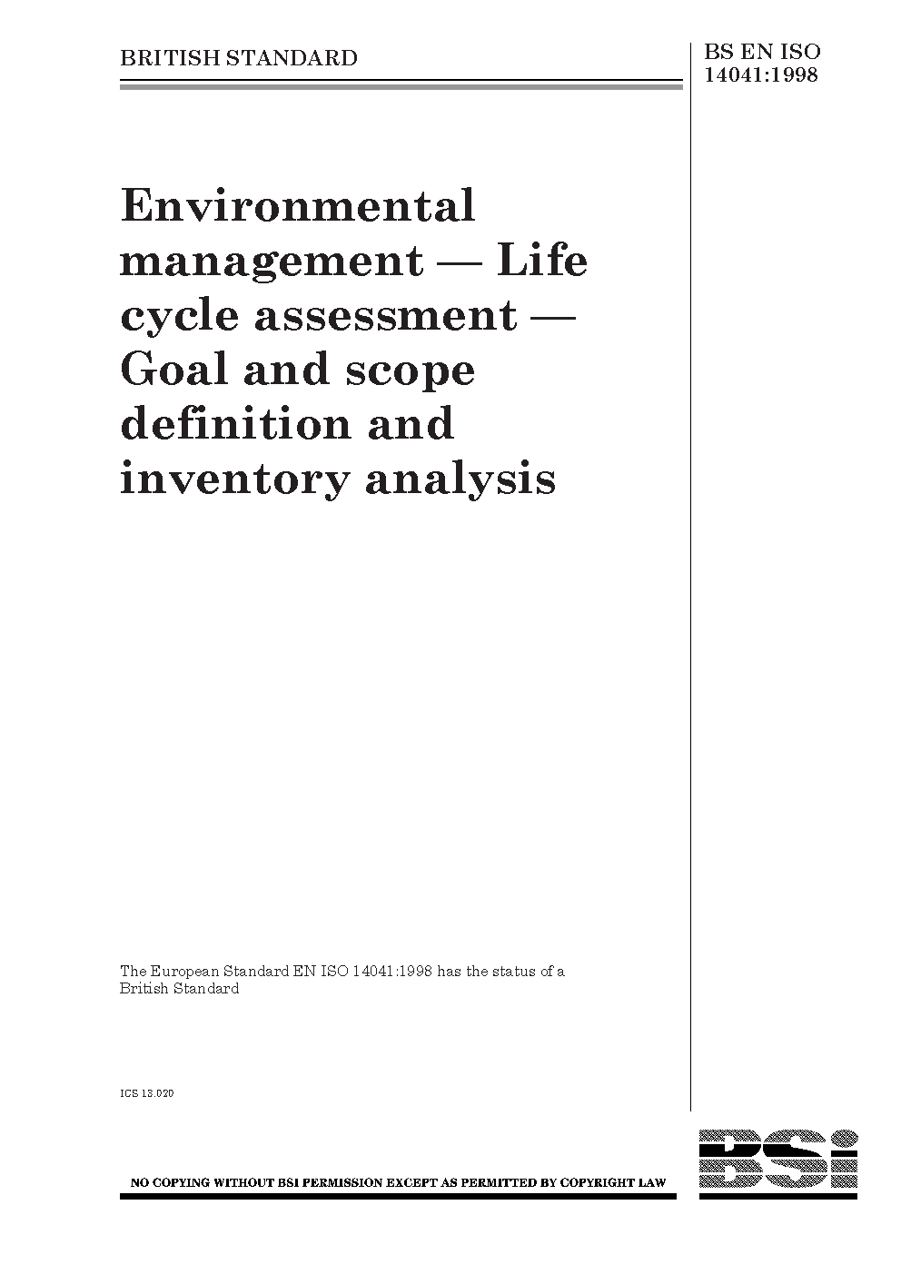 Environmental management. Life cycle assessment. Goal and scope definition and inventory analysis