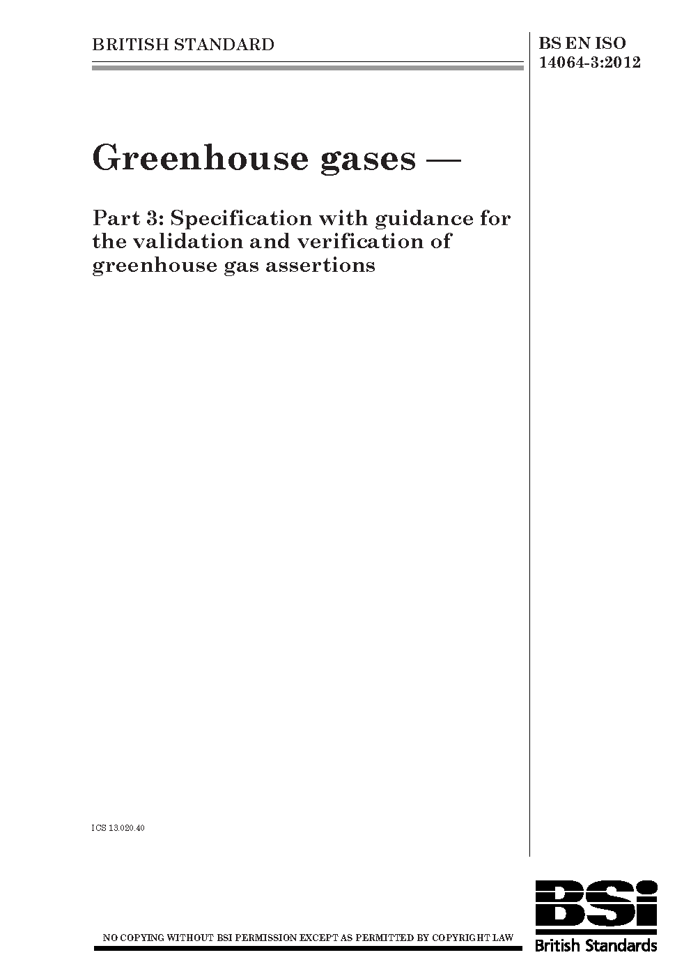 Greenhouse gases Specification with guidance for the verification and validation of greenhouse gas statements