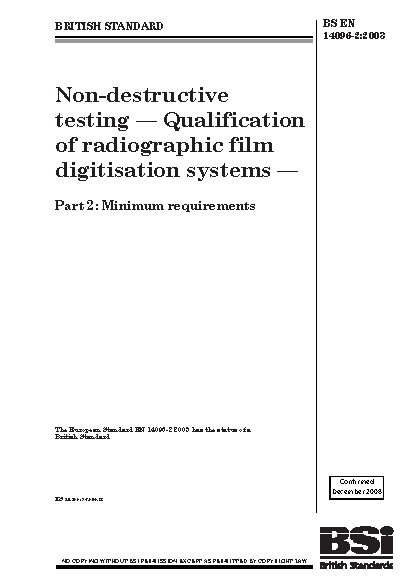 Non-destructive testing. Qualification of radiographic film digitisation systems Minimum requirements