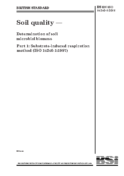 Soil quality. Determination of soil microbial biomass Substrate-induced respiration method