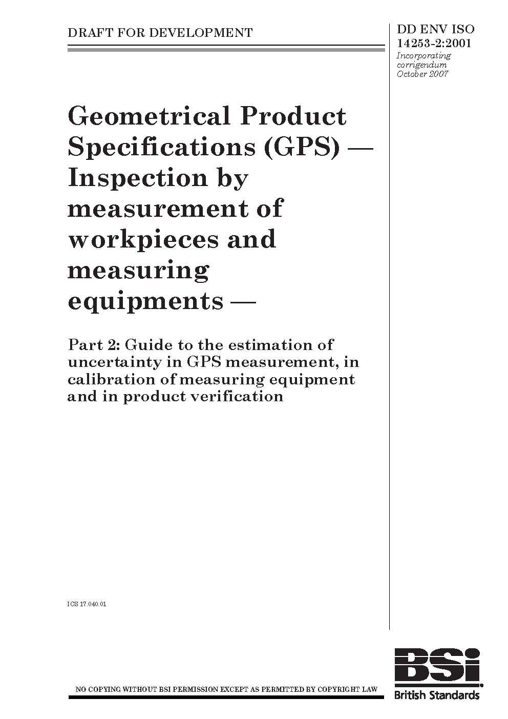 Geometrical product specifications (GPS). Inspection by measurement of workpieces and measuring equipment Guidance for the estimation uncertainty in GPS measurement, calibration verification