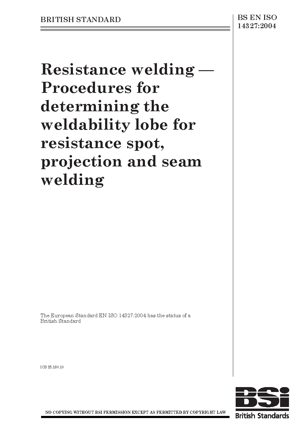 Spot welding;Stainless steels;Welding;Steels;Aluminium;Quality control;Seam welding;Resistance welding;Thickness;Dimensions;Projection welding;Shape;Welding equipment;Weldability testing;Welding electrodes;Aluminium alloys