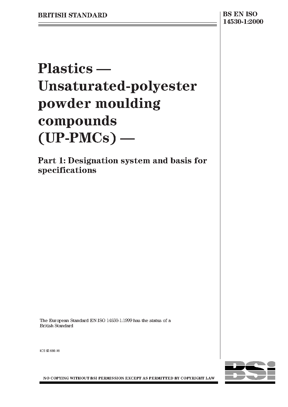 Plastics. Unsaturated-polyester powder moulding compounds (UP-PMCs) Designation system and basis for specifications