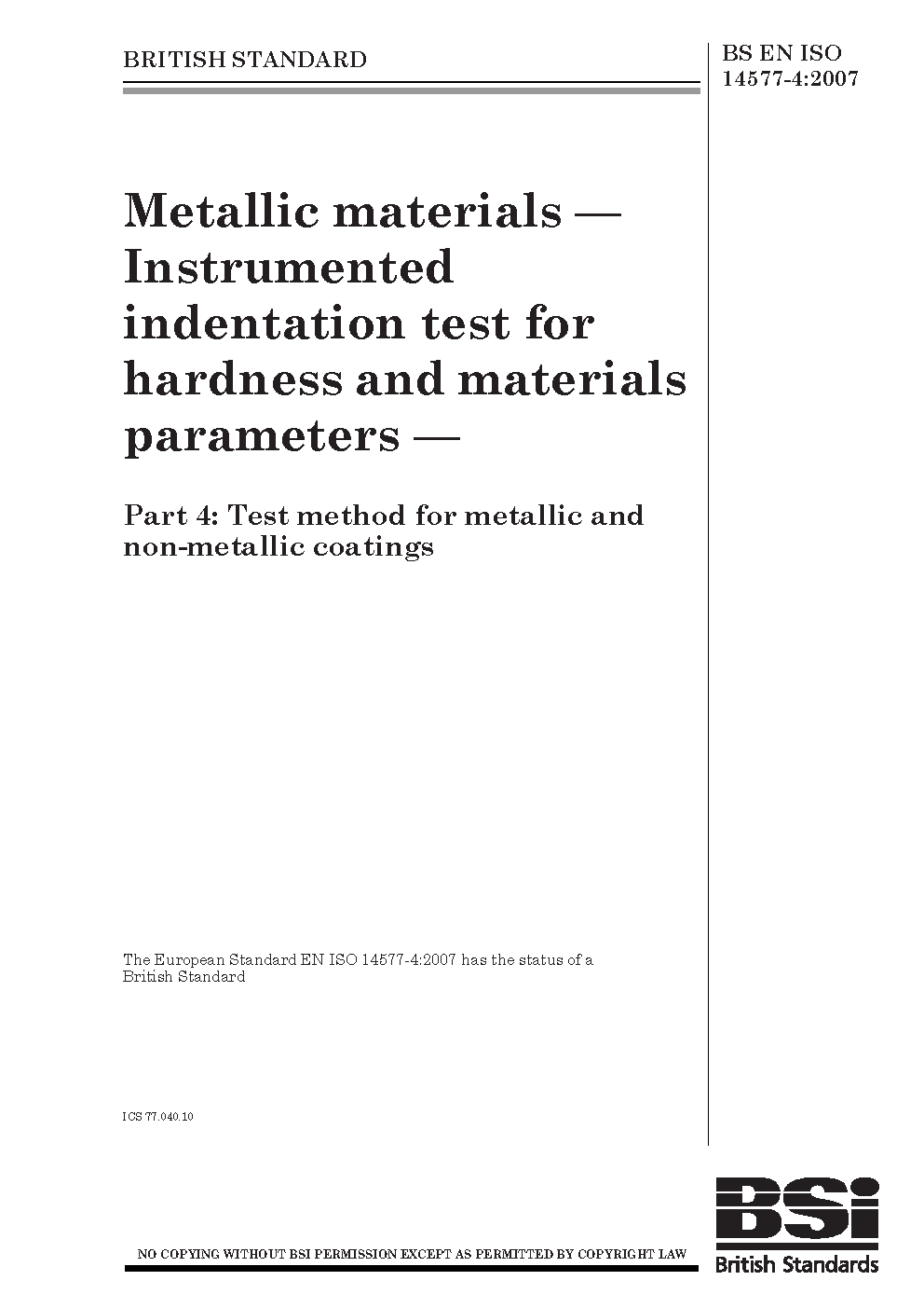 BS EN ISO 14577-4:2007