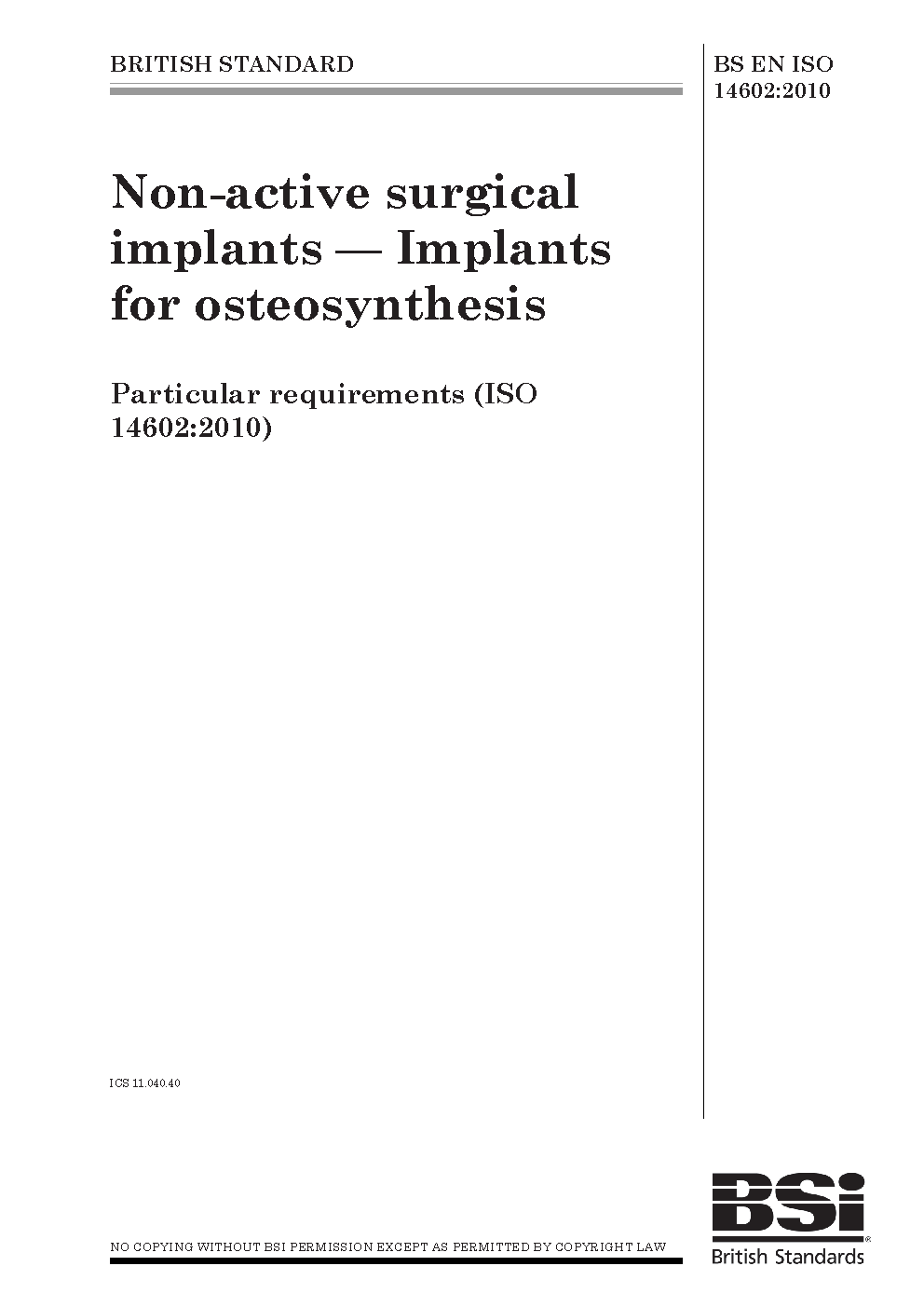 Non-active surgical implants. Implants for osteosynthesis. Particular requirements