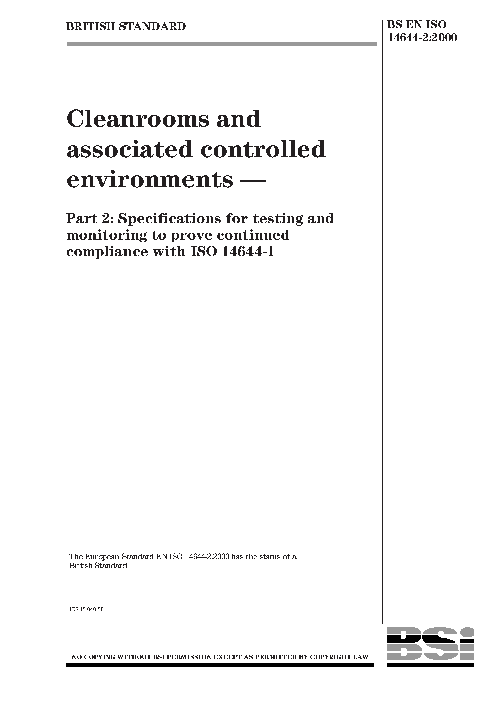 Cleanrooms and associated controlled environments Monitoring to provide evidence of cleanroom performance related air cleanliness by particle concentration