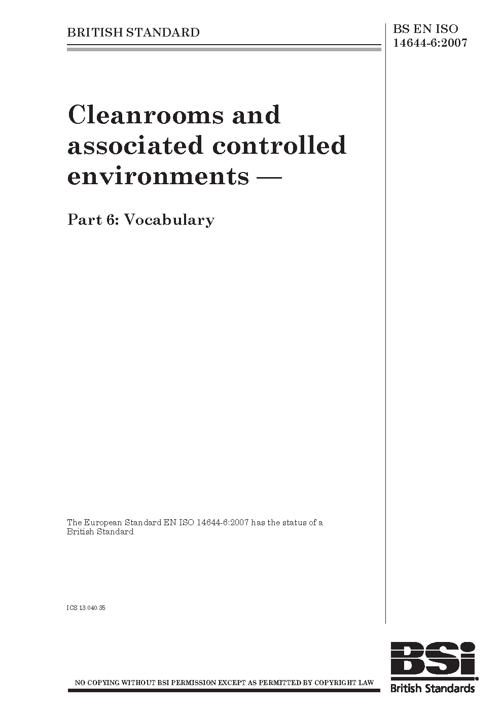 Particulate air pollutants;Air cleaning equipment;Terminology;Clean rooms;Contamination;Controlled-atmosphere rooms;Environmental cleanliness;Vocabulary;Environment (working)