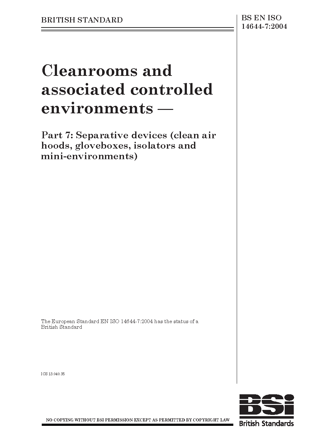 Cleanrooms and associated controlled environments Separative devices (clean air hoods, gloveboxes, isolators mini-environments)