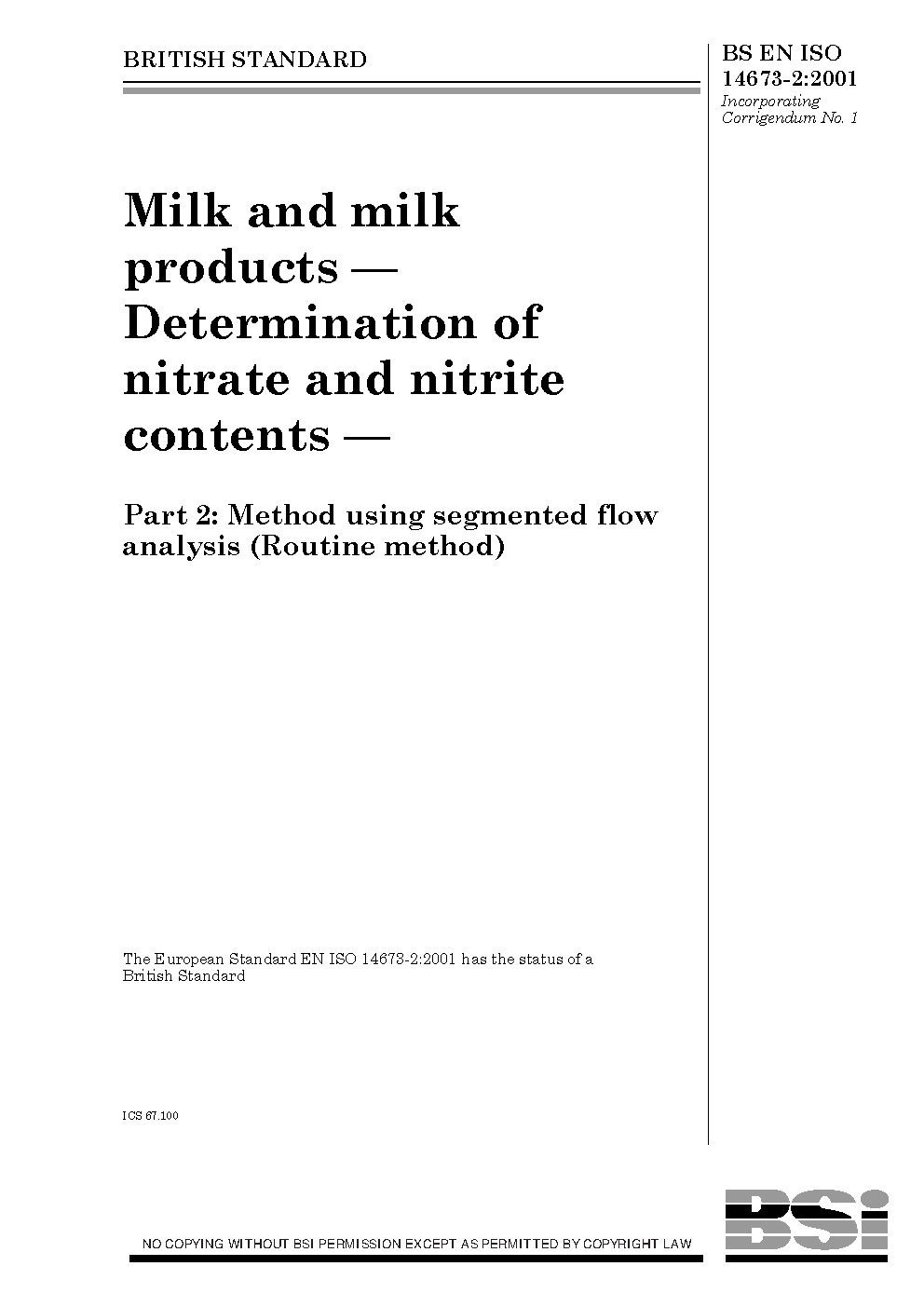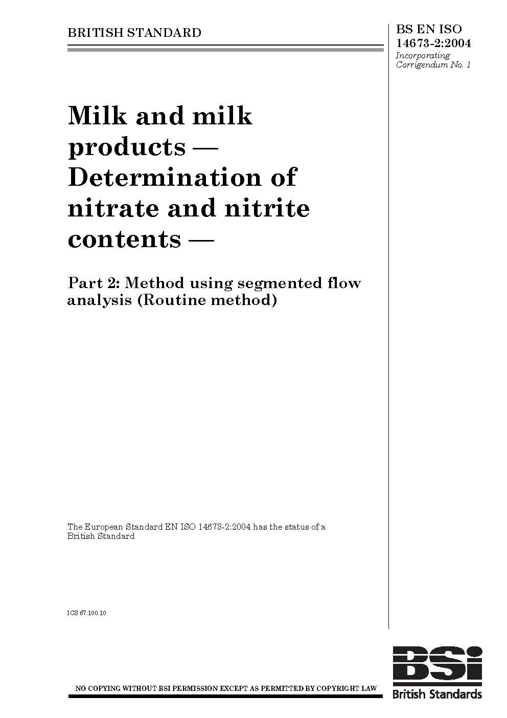 Milk and milk products. Determination of nitrate nitrite contents Method using segmented flow analysis (Routine method)