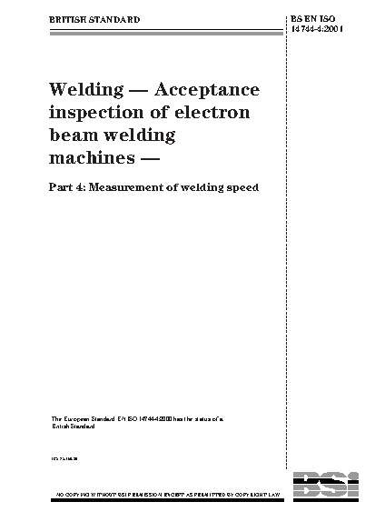 Acceptance inspection;Electron beams;Time measurement;Welding equipment;Tolerances (measurement);Welding;Welded joints;Joining processes;Electric welding;Acceptance (approval);Test equipment