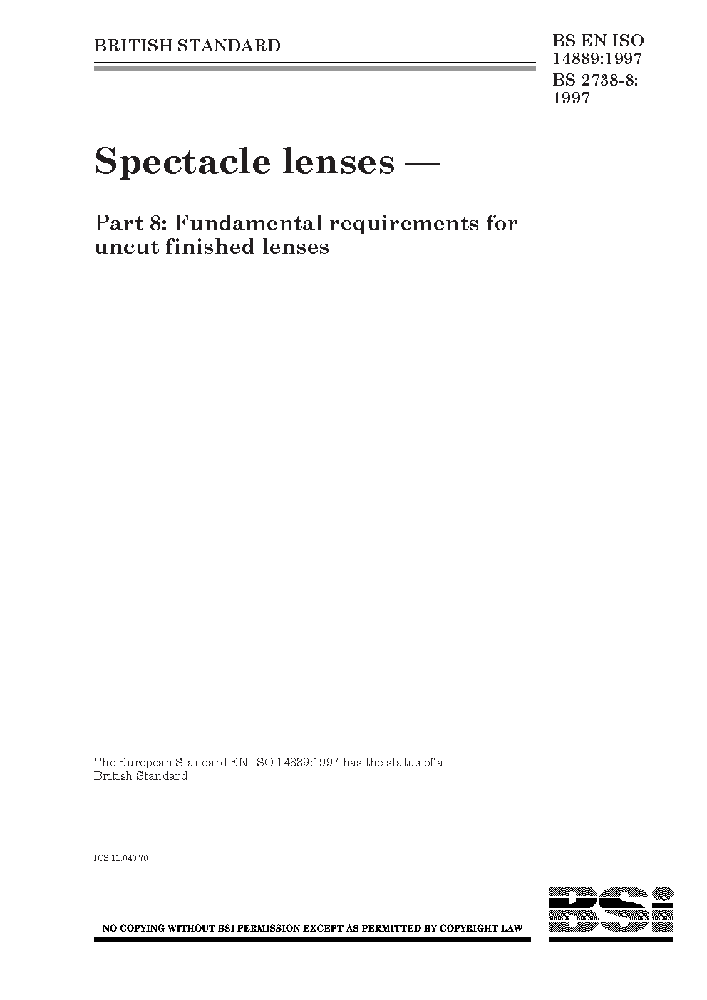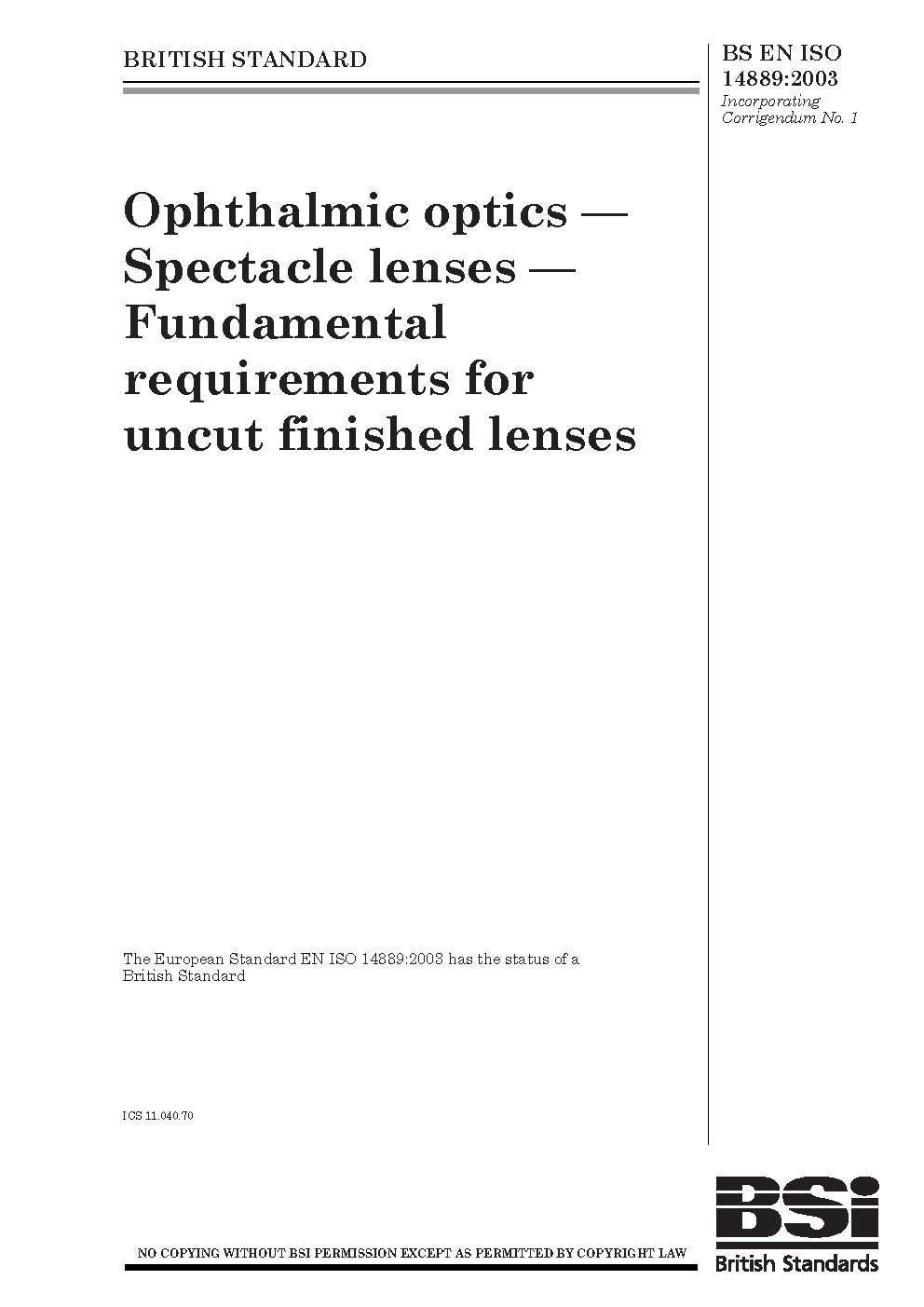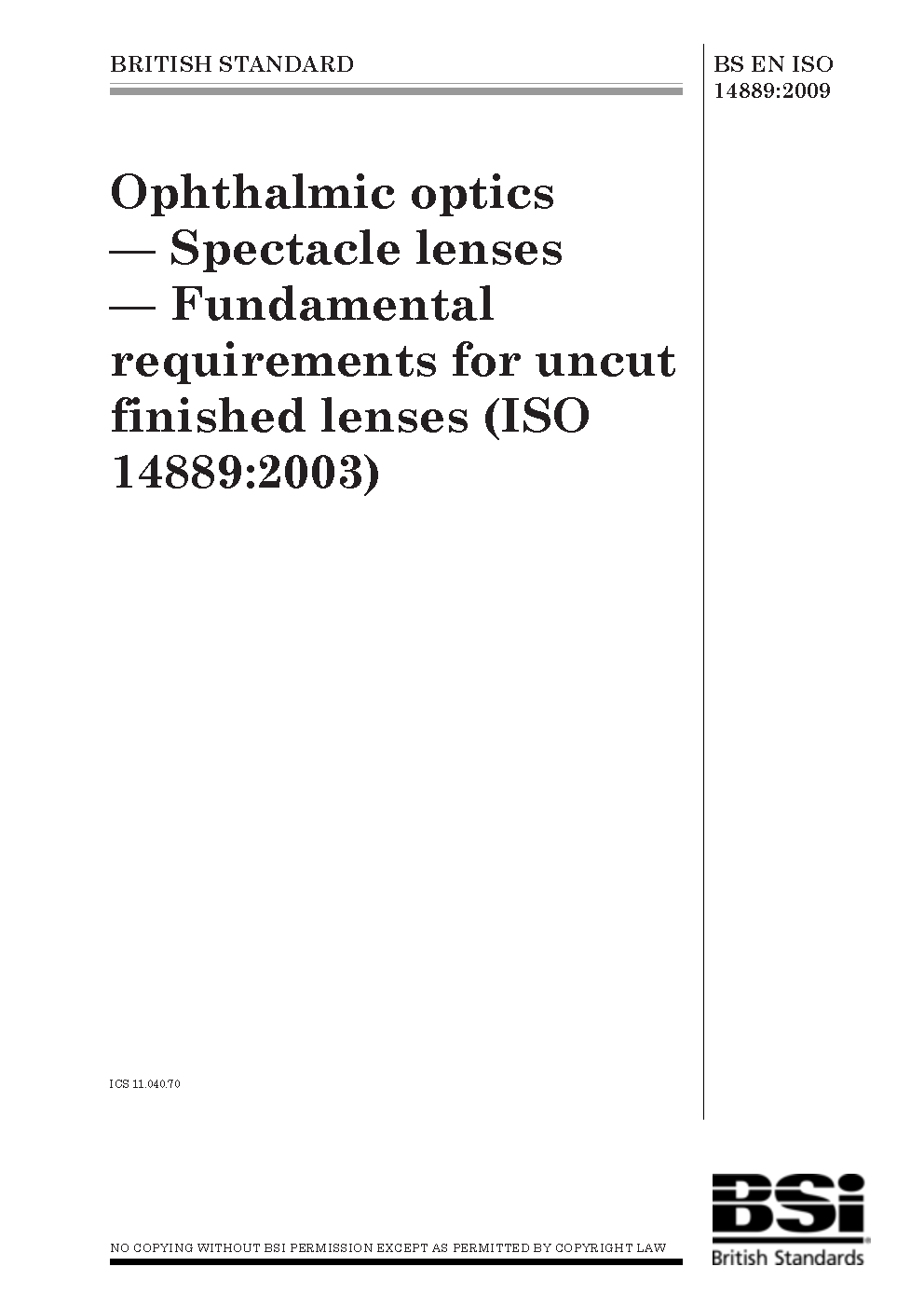 Ophthalmic optics. Spectacle lenses. Fundamental requirements for uncut finished lenses