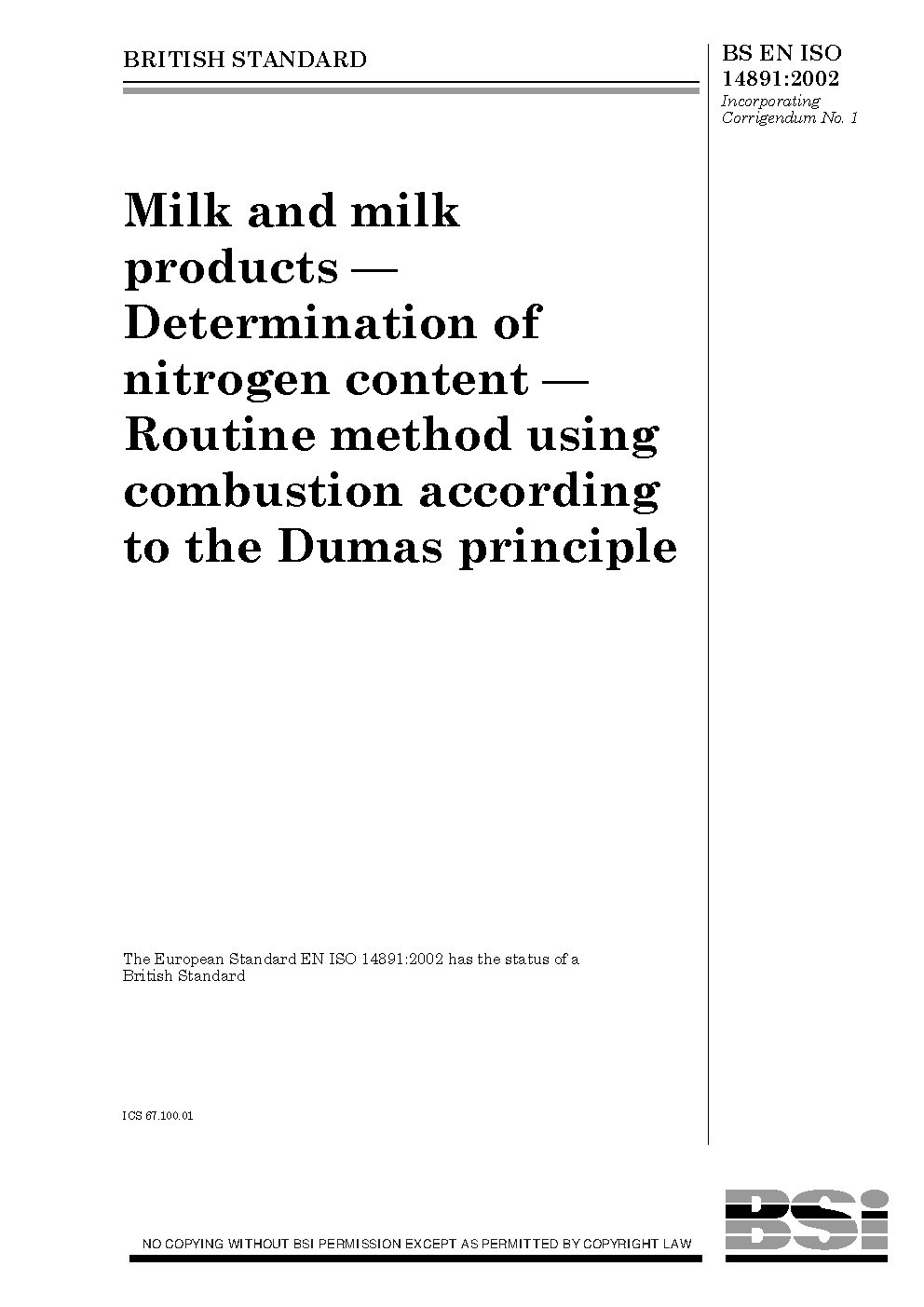 Milk;Dairy products;Determination of content;Nitrogen;Food products;Combustion test methods;Combustion