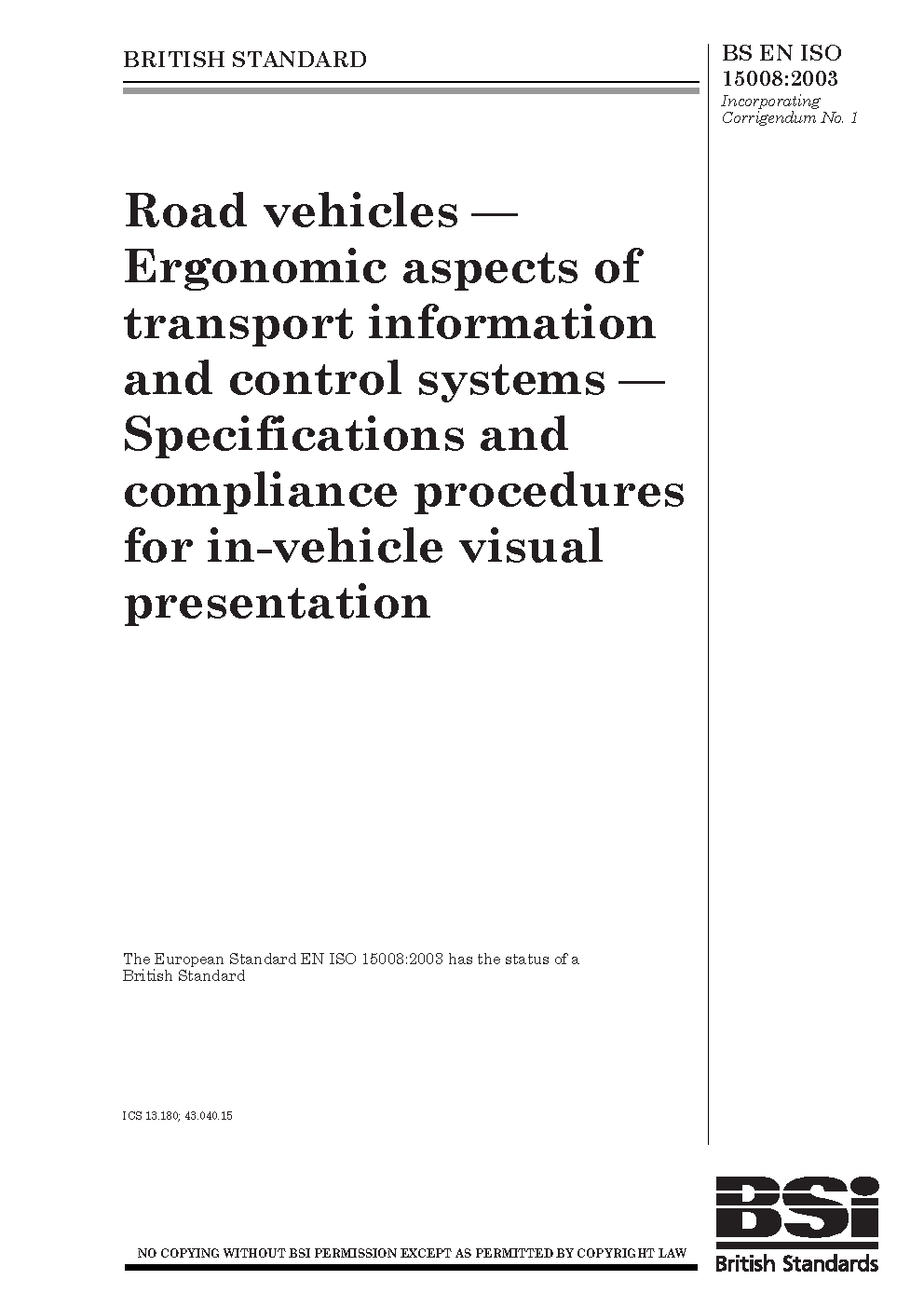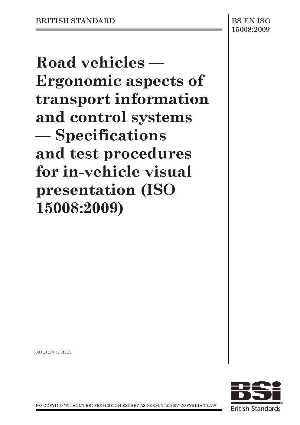 Road vehicles. Ergonomic aspects of transport information and control systems. Specifications and test procedures for in-vehicle visual presentation