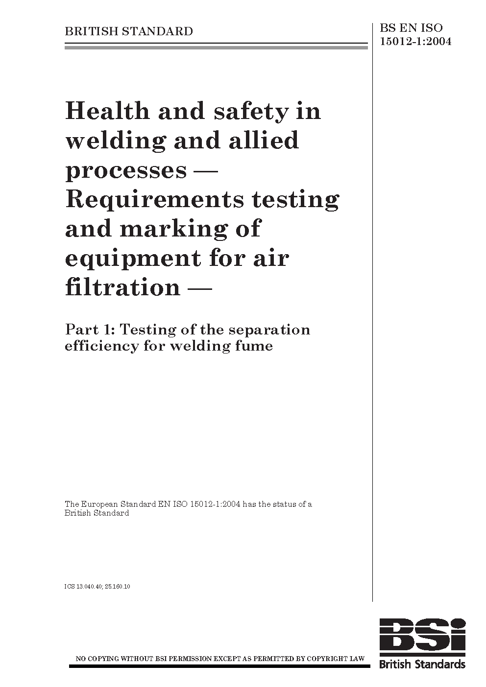BS EN ISO 15012-1:2013