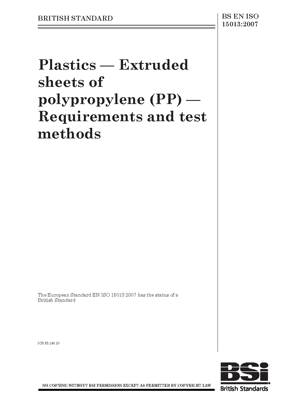 Plastics. Extruded sheets of polypropylene (PP). Requirements and test methods