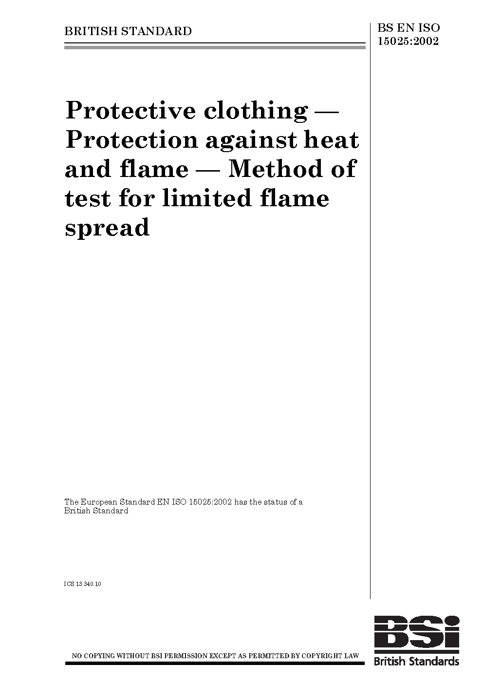 Protective clothing. Protection against heat and flame. Method of test for limited flame spread