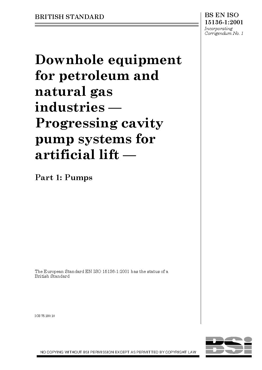 Petroleum and natural gas industries. Progressing cavity pump systems for artificial lift Pumps