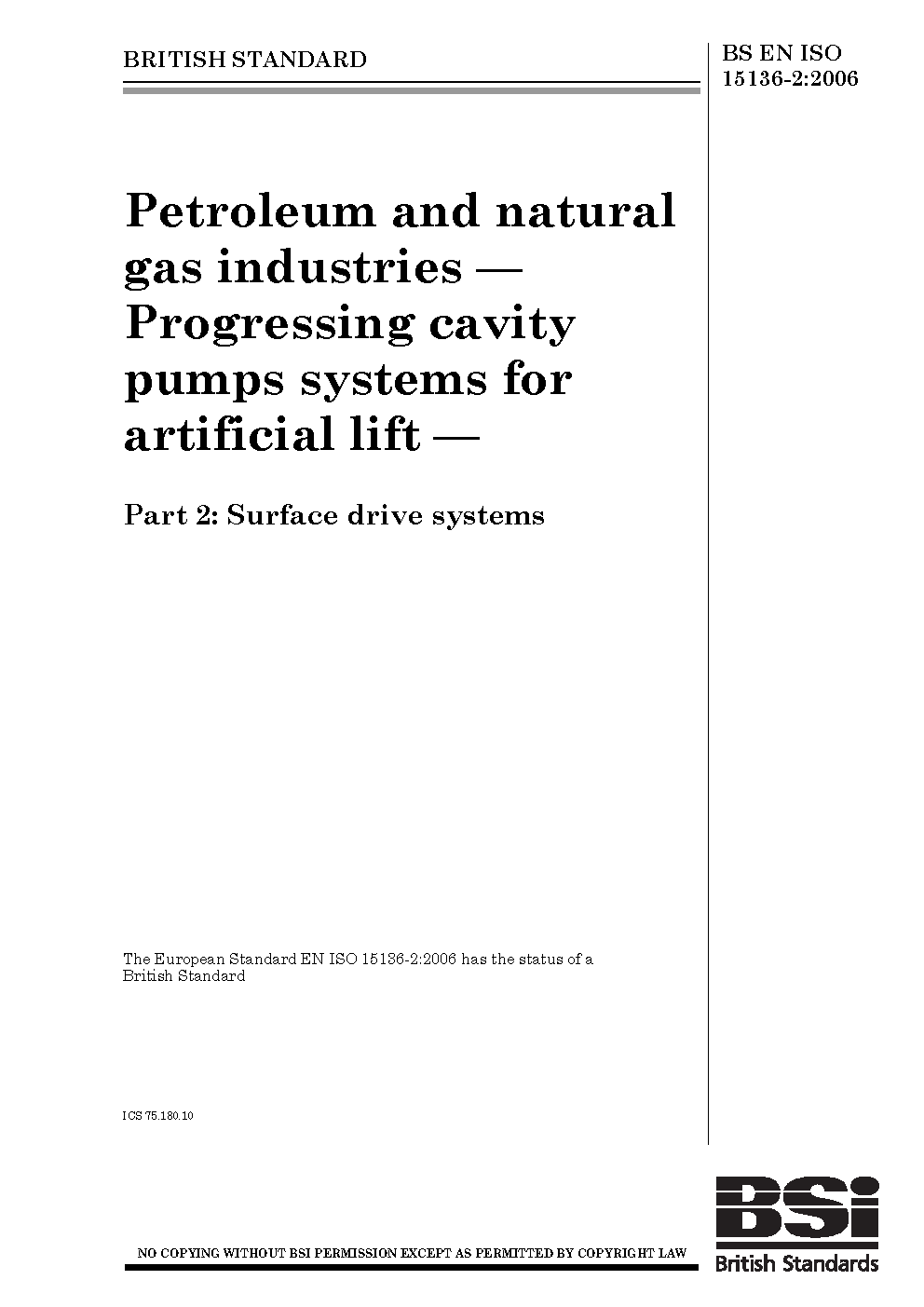 Petroleum and natural gas industries. Progressing cavity pump systems for artificial lift Surface drive