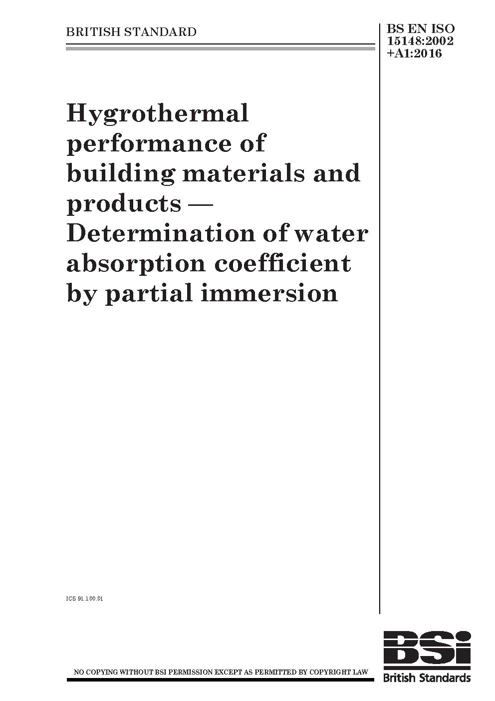 Hygrothermal performance of building materials and products. Determination of water absorption coefficient by partial immersion