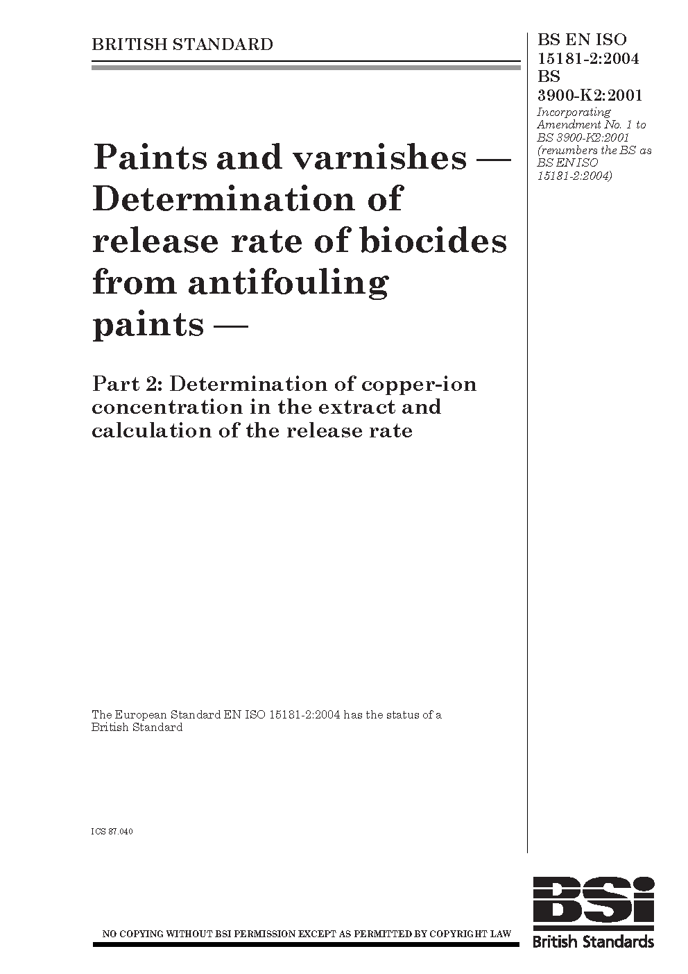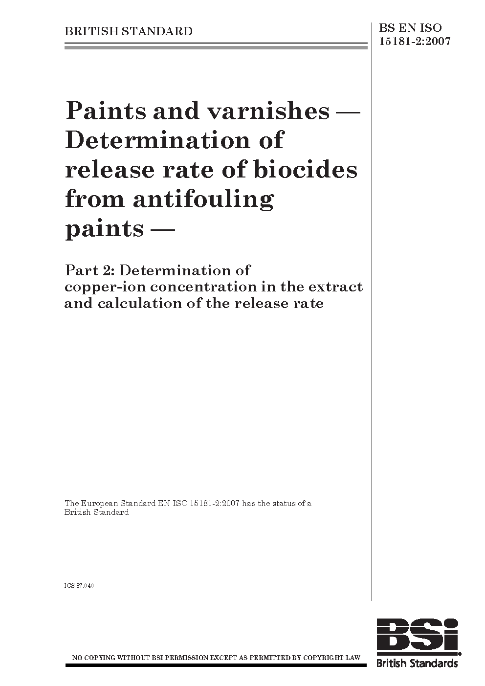 Paints and varnishes. Determination of release rate biocides from antifouling paints copper-ion concentration in the extract calculation