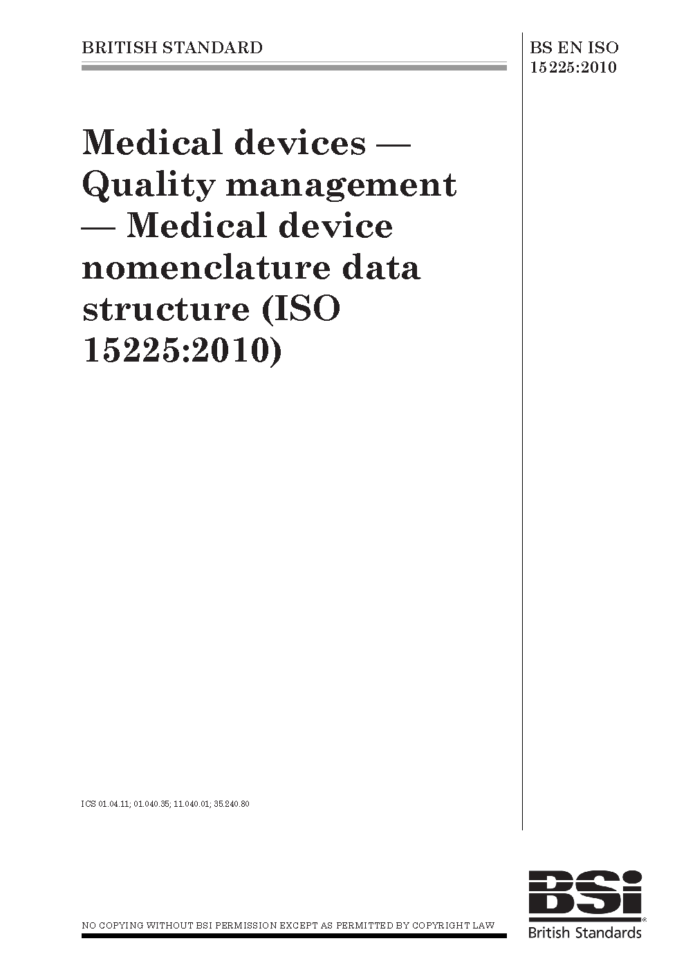 BS EN ISO 15225:2010