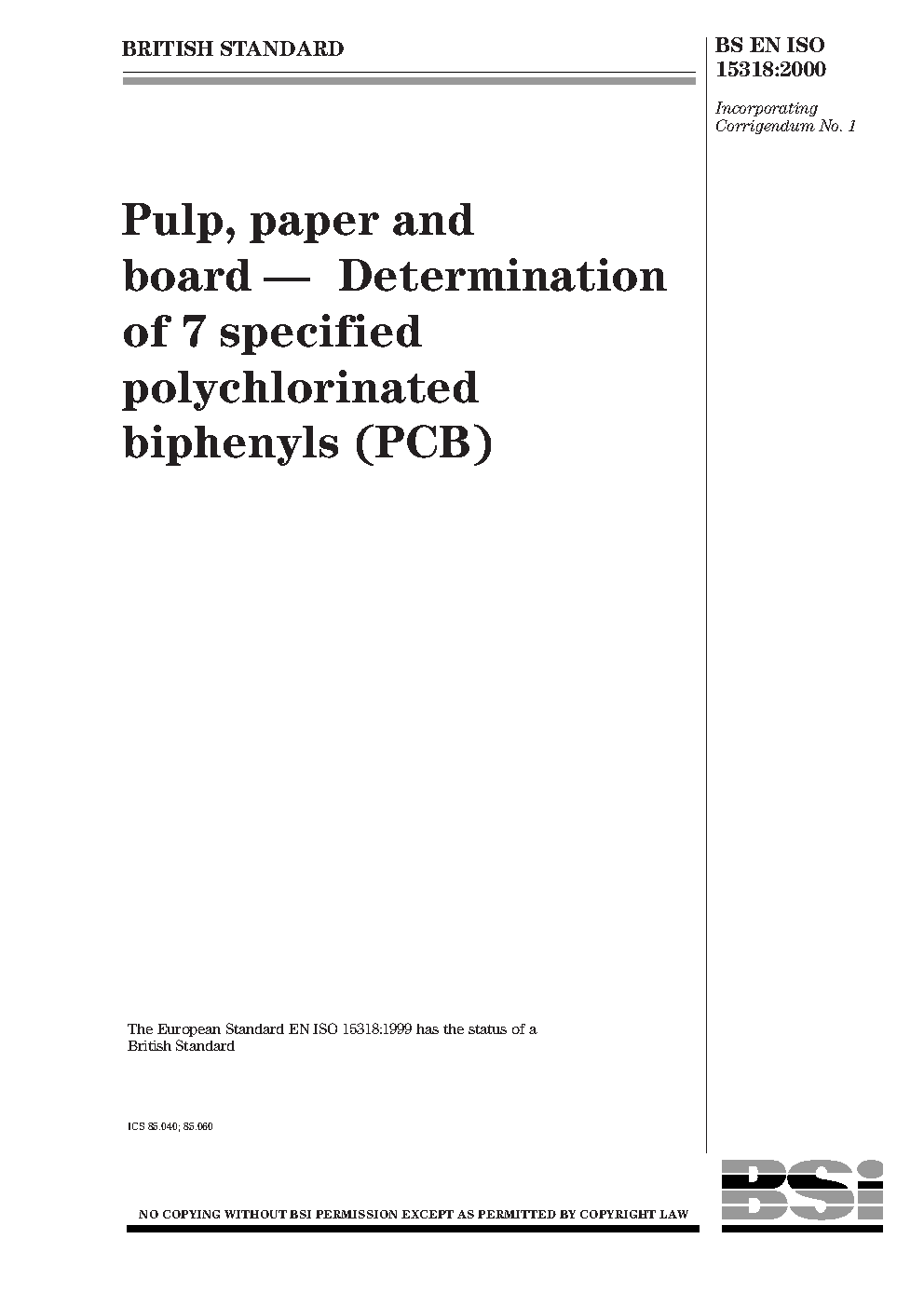 Pulp, paper and board. Determination of 7 specified polychlorinated biphenyls (PCB)
