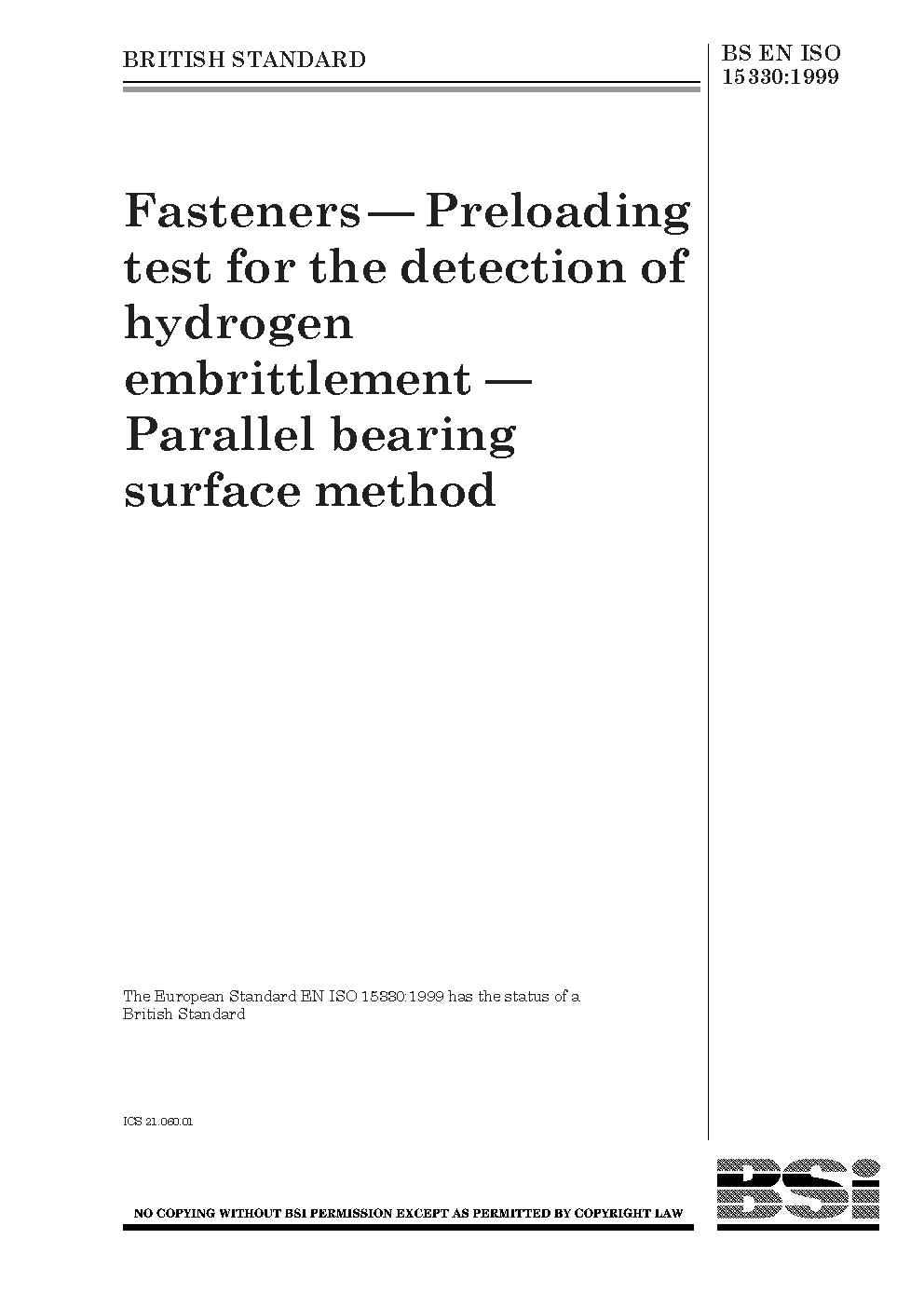 Fasteners. Preloading test for the detection of hydrogen embrittlement. Parallel bearing surface method