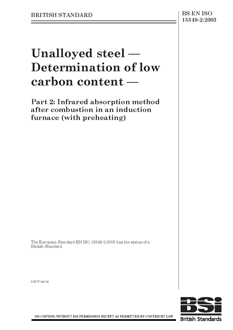 Unalloyed steel. Determination of low carbon content Infrared absorption method after combustion in an induction furnace (with preheating)
