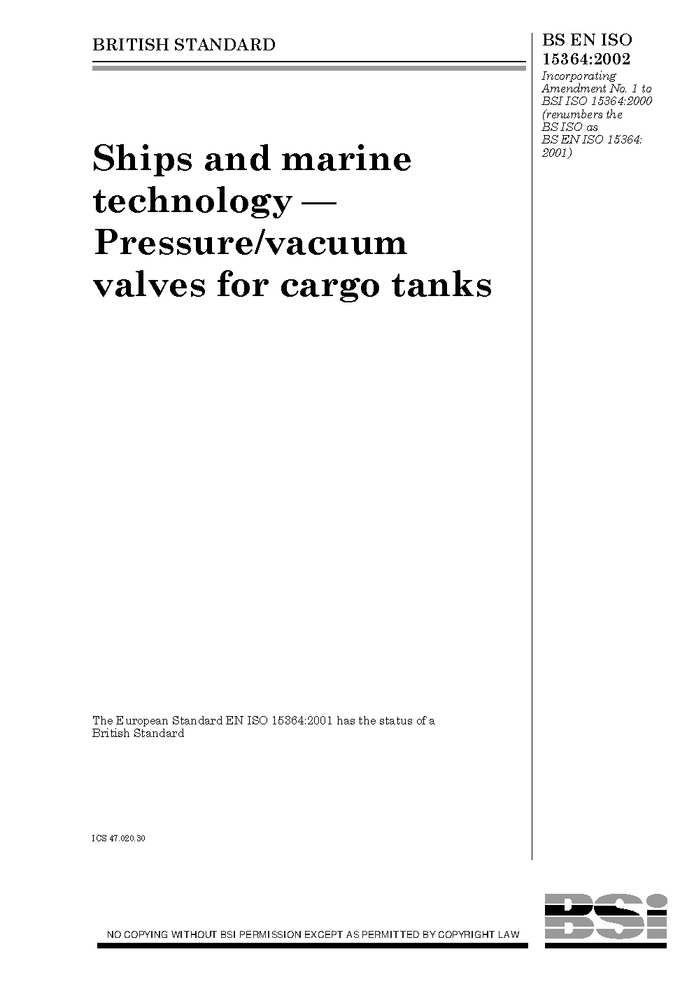 Ships and marine technology. Pressure/vacuum valves for cargo tanks