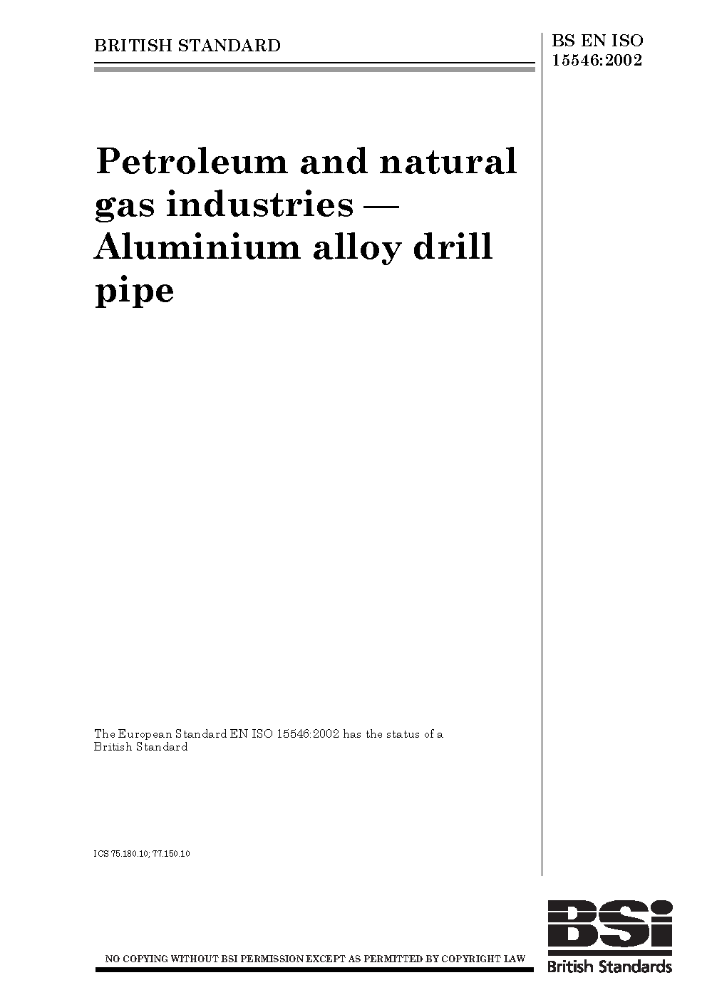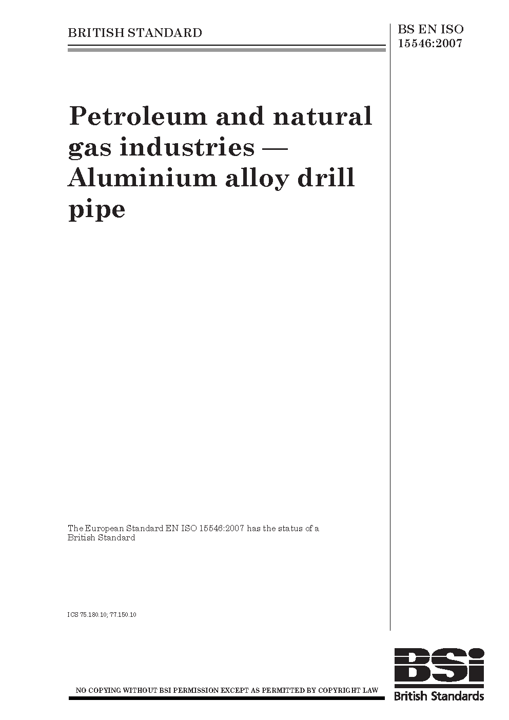 Petroleum and natural gas industries. Aluminium alloy drill pipe