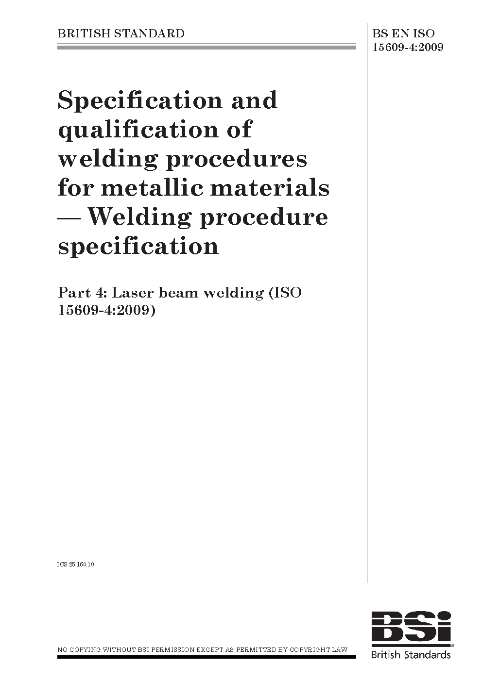BS EN ISO 15609-4:2009