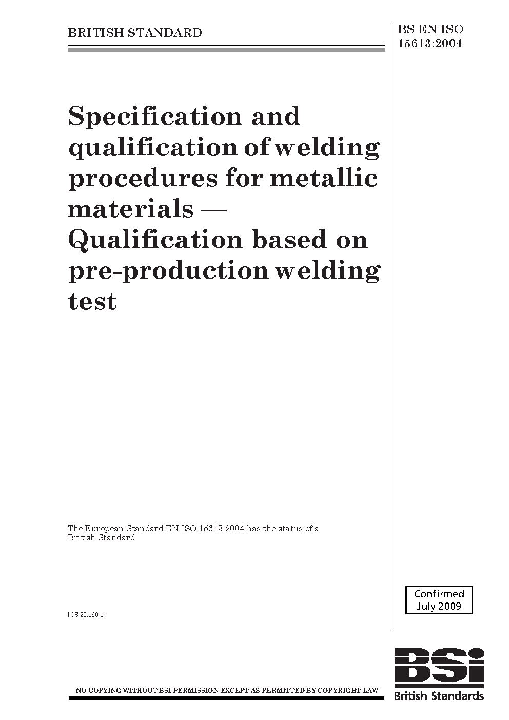 Specification and qualification of welding procedures for metallic materials. Qualification based on a pre-production welding test